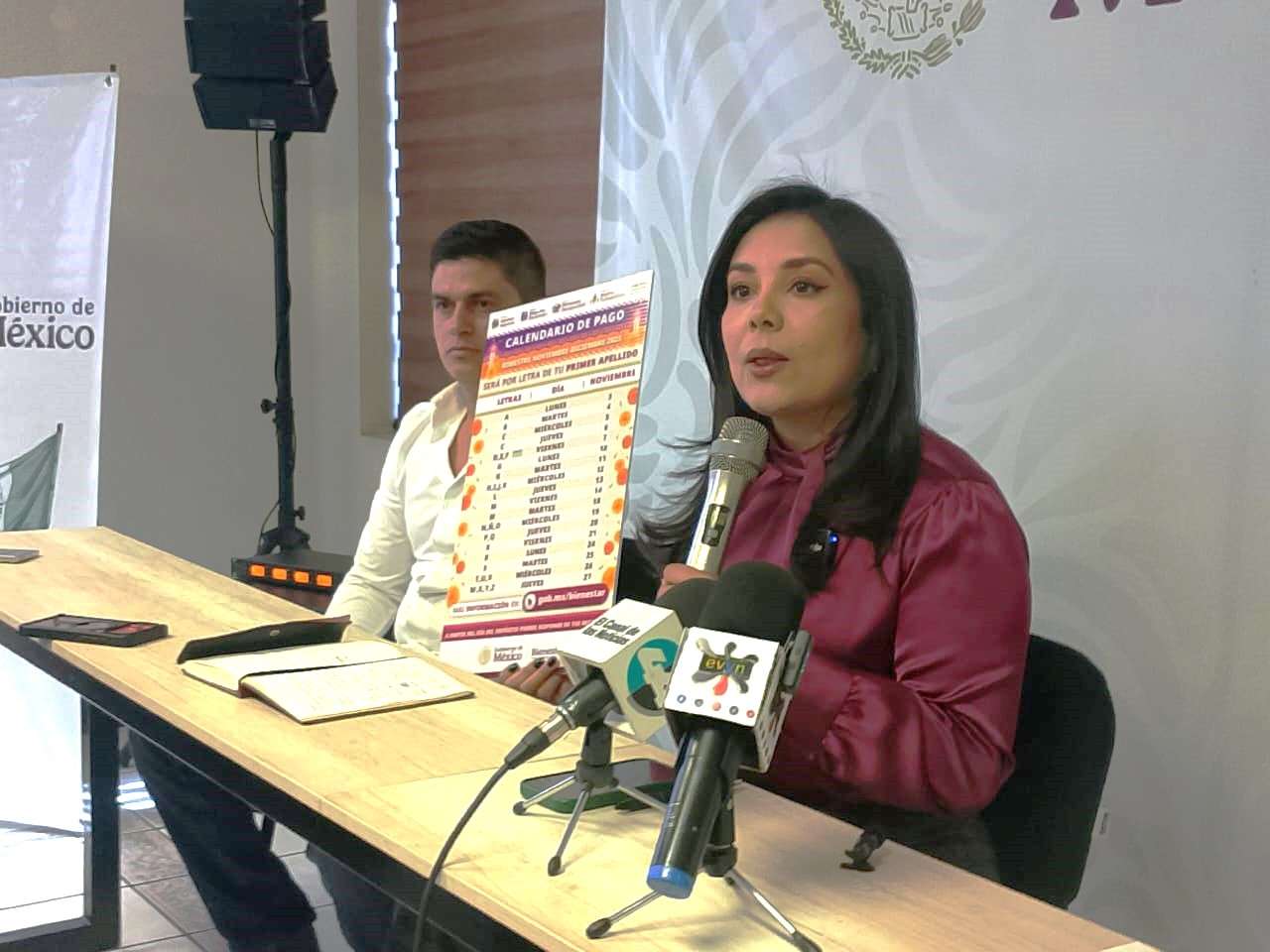 La delegada de Bienestar, Mayra Chávez, destacó el funcionamiento del esquema y reconoció el trabajo del equipo encargado de visitar directamente los hogares de los beneficiarios. Durante la conferencia, presentó a la responsable del programa, Amanda Rocha, quien ofreció la actualización de resultados.