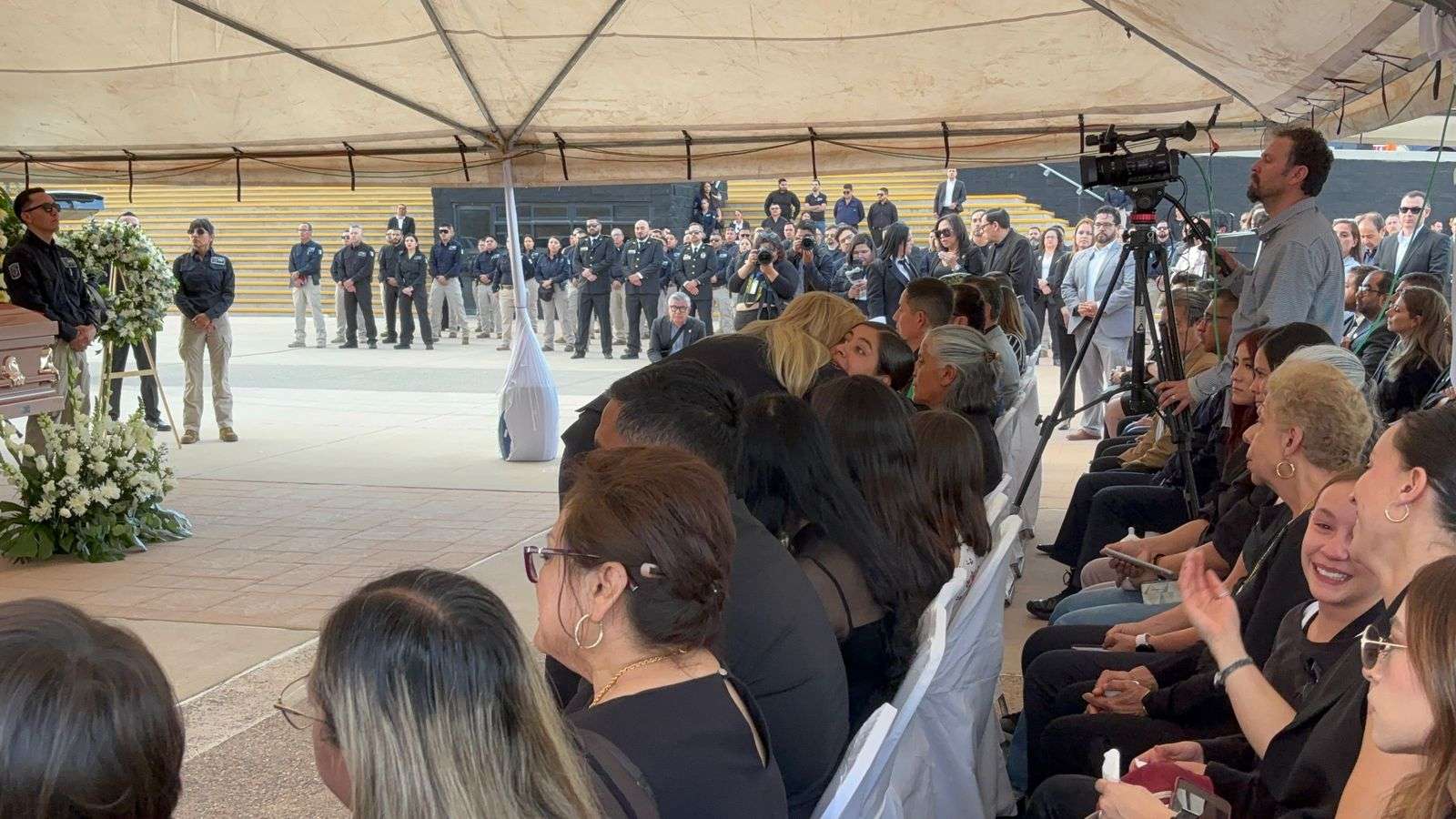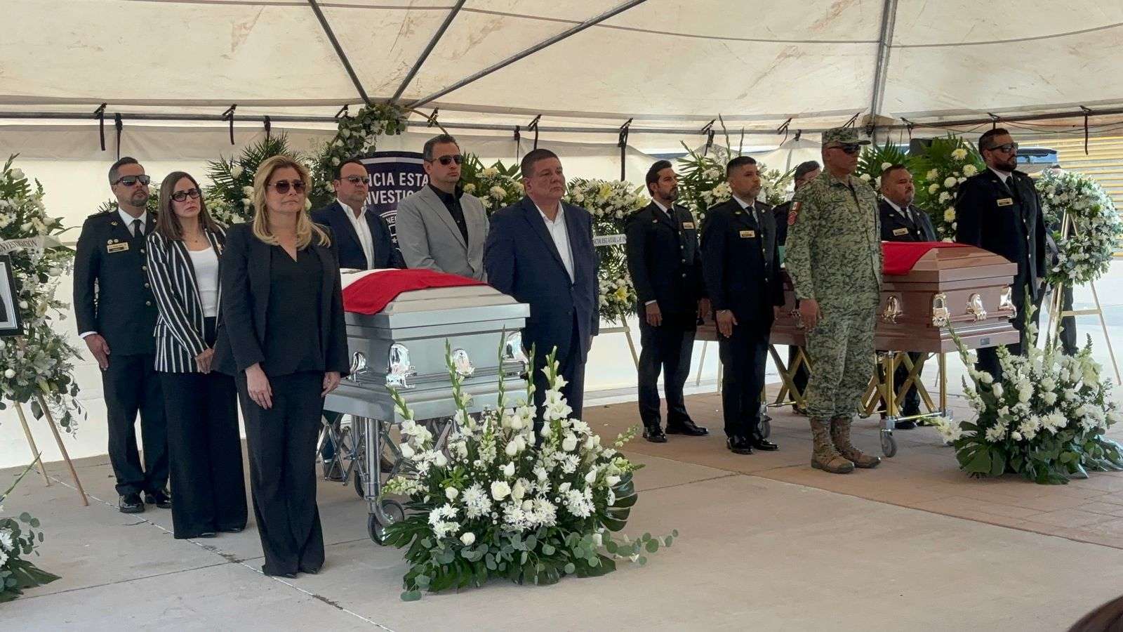 Chihuahua.- En una ceremonia marcada por el respeto y la solemnidad, este lunes fueron despedidos los restos mortales de Pedro Román Oseguera Cervantes, director de la Agencia Estatal de Investigación (AEI), y del agente Manuel Méndez Montes, quienes perdieron la vida en cumplimiento de su deber.