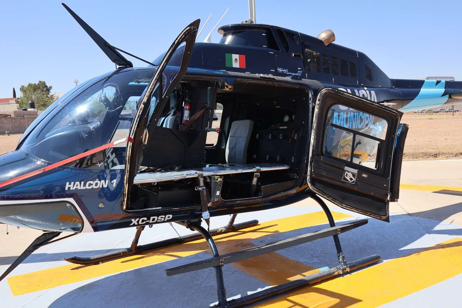 Chihuahua.- Una de las herramientas más emblemáticas con que cuenta la Dirección de Seguridad Pública Municipal (DSPM) de Chihuahua para atender emergencias policiales es el Halcón I, un potente helicóptero marca Bell Ranger 3 206 de fabricación norteamericana.