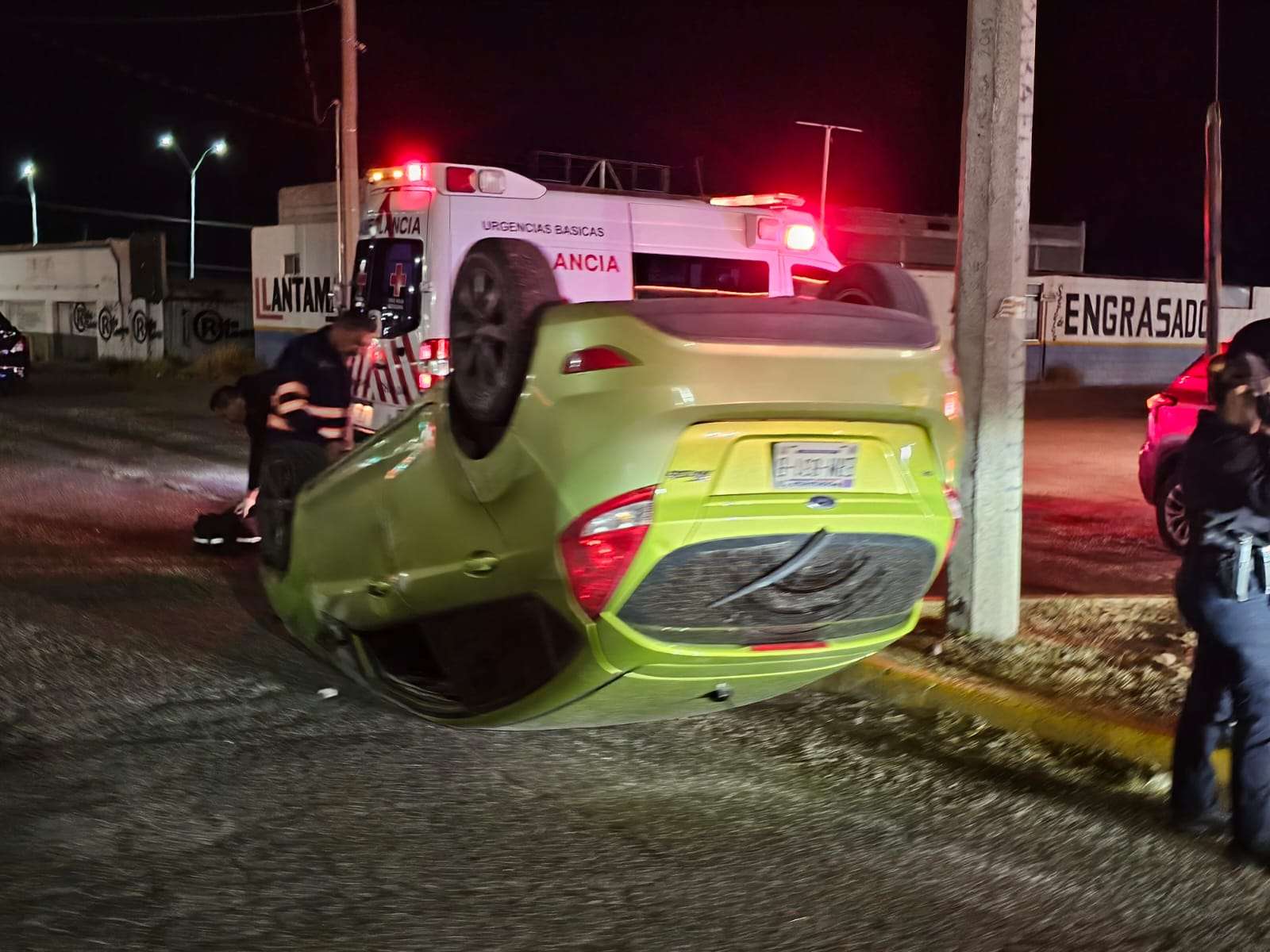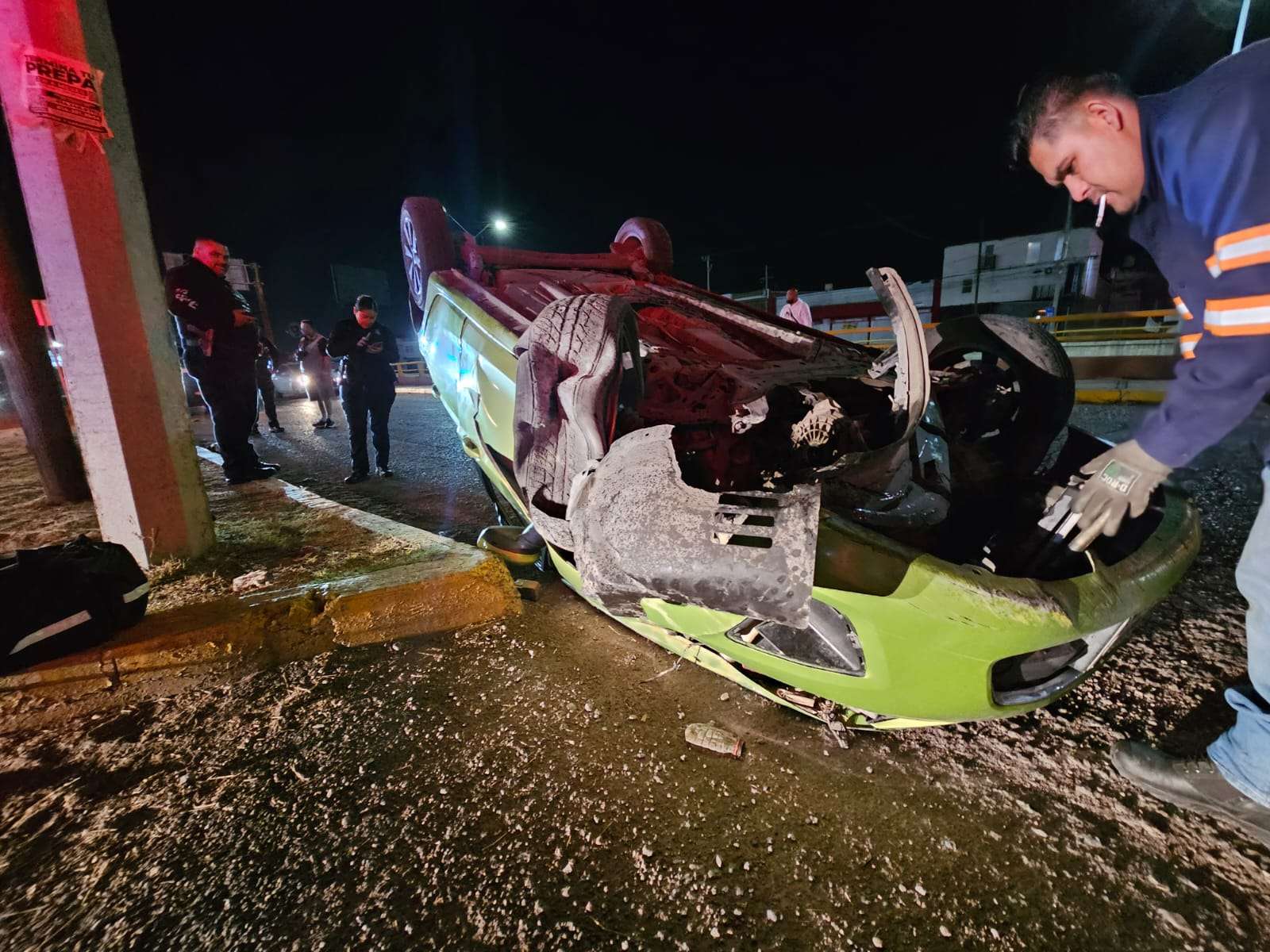 Chihuahua. - Un aparatoso accidente se registró esta noche sobre la Avenida Tecnológico, luego de que el conductor de un vehículo Ford Fiesta de color verde perdiera el control de su unidad debido a la combinación de exceso de velocidad y el consumo de alcohol, lo que provocó que terminara volcando de manera aparatosa.