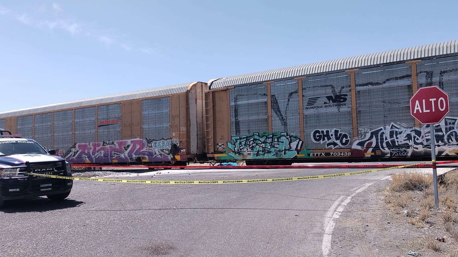 El incidente, según reportes preliminares, involucró a lo que podría ser una grúa o un vehiculo de grandes dimensiones que colisionó contra un tren.