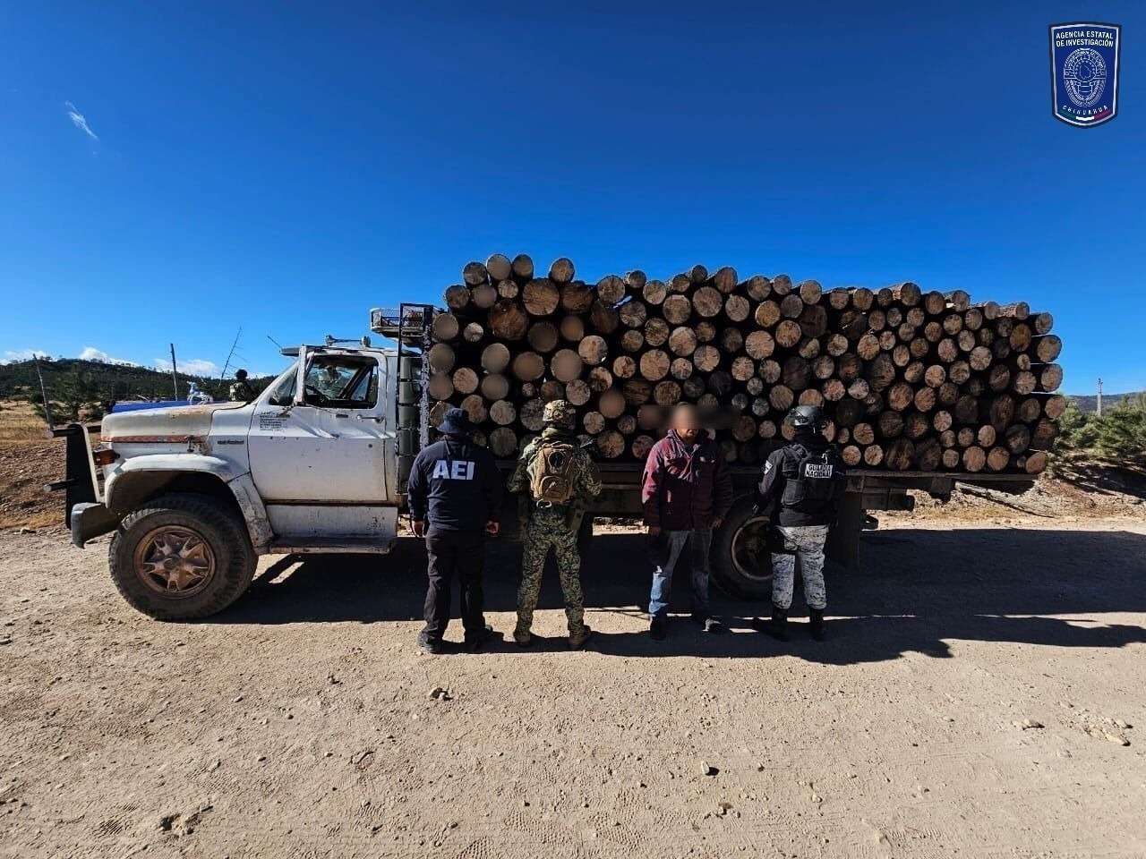 Cuauhtémoc, Chih.- El operativo inter institucional que atiende delitos contra el medio ambiente, detuvo al chofer de un camión que trasportaba 170 trozos de madera de pino en rollo sin acreditar su legal procedencia, en el municipio de Bocoyna.