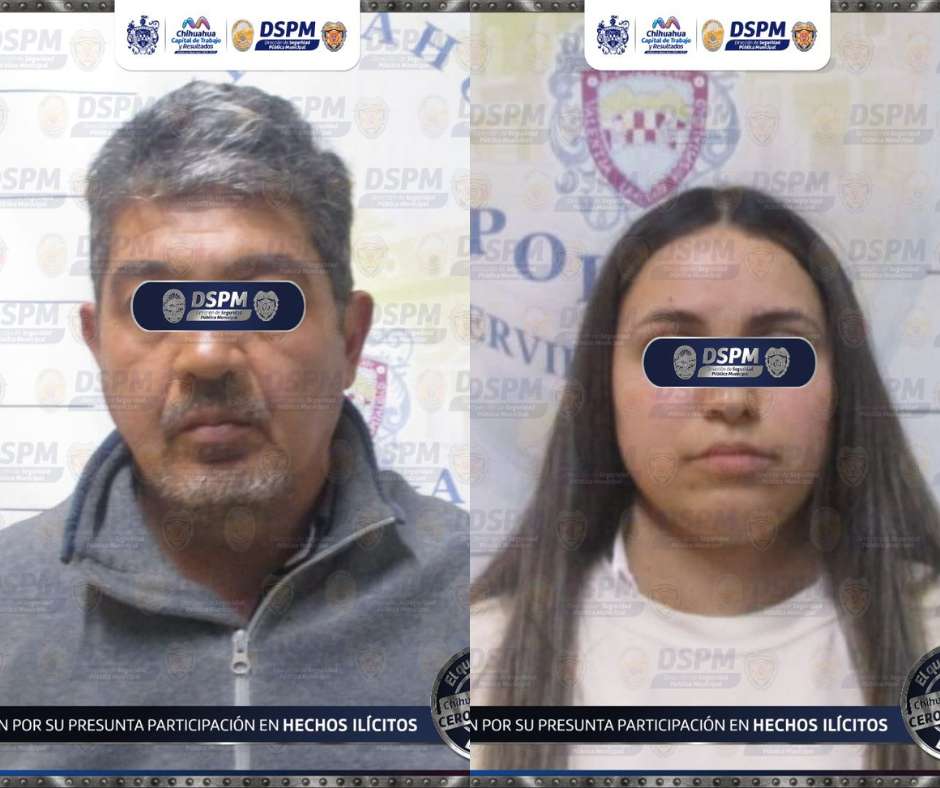 A los números de emergencia se reportó la presencia de personas armadas por lo que gracias al trabajo de campo y el apoyo a través de las cámaras de la Plataforma Escudo Chihuahua, lograronnidentificar y dar alcance a quienes se identificaron como Luis Alberto A. J., de 50 años de edad y Paloma Esmeralda Z.C., de 24 años.