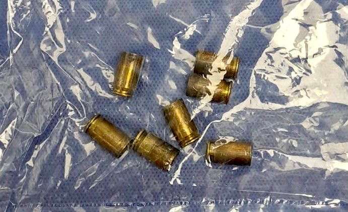 El arma estaba cargada con 9 cartuchos y en el lugar hallaron 7 casquillos sobre la banqueta.