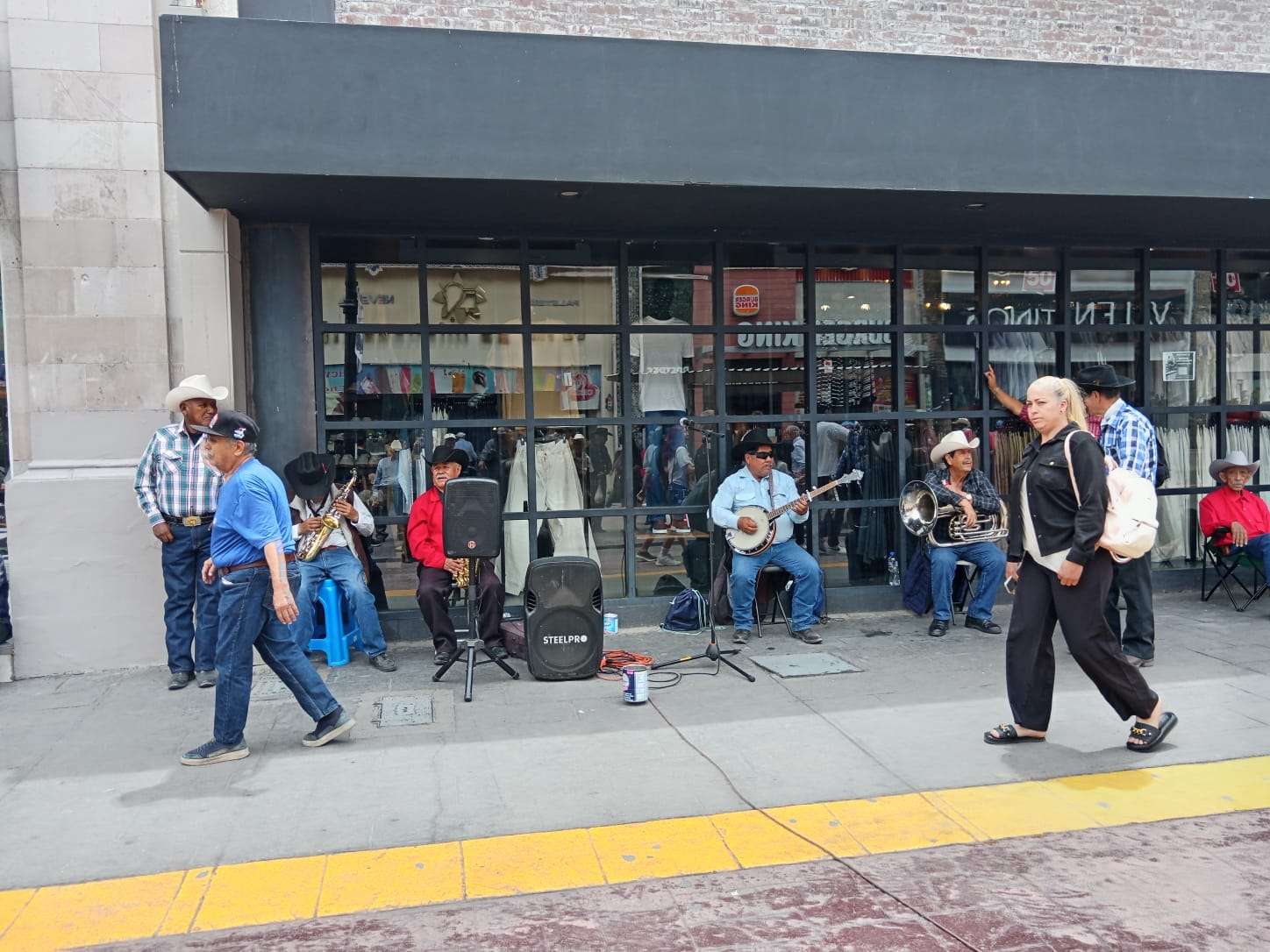 Aunque la frescura matutina cedió paso al sol, el flujo de personas en el Centro Histórico se mantuvo constante. En la calle Libertad, grupos de adultos mayores se congregaron para escuchar las baladas y corridos que marcan la identidad del norte, mientras los músicos afinaban sus instrumentos ante una audiencia expectante.