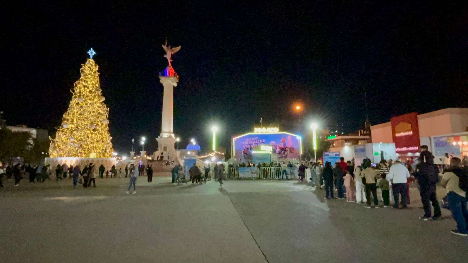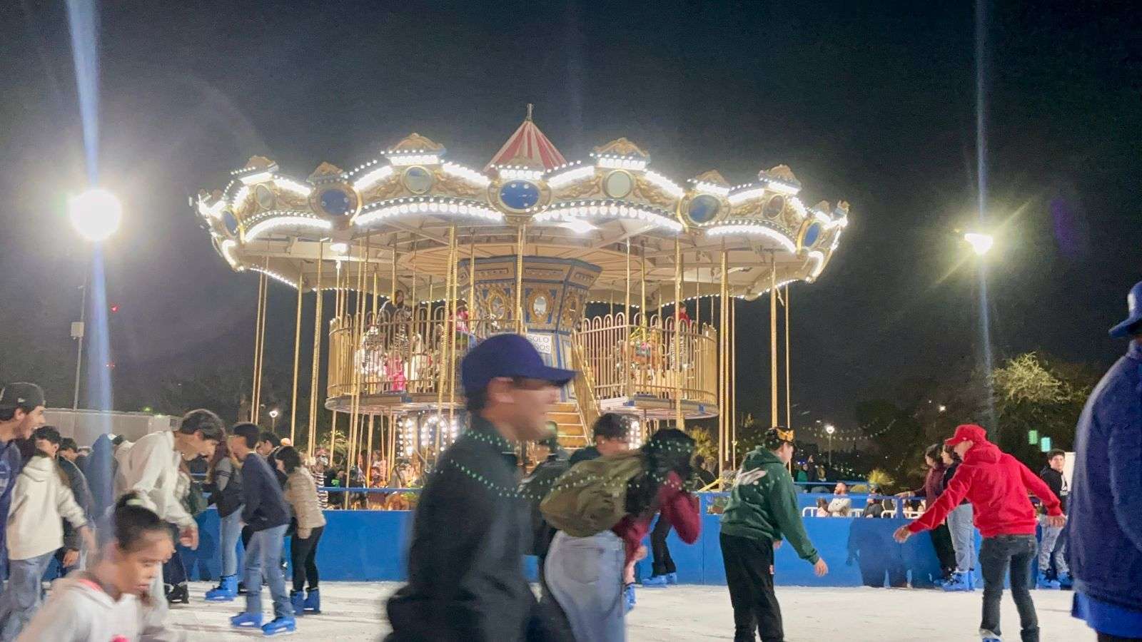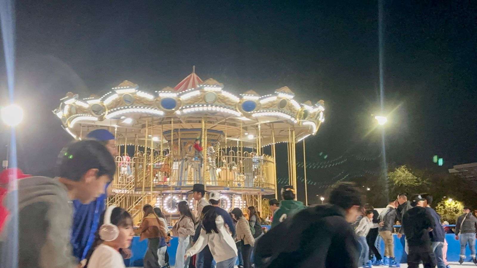 Chihuahua, Chih.– A un día de la Nochebuena, la Plaza Mayor luce llena de familias chihuahuenses que aprovechan las atracciones decembrinas, donde la pista de hielo se ha convertido en la favorita para divertirse y entrar en ambiente navideño.