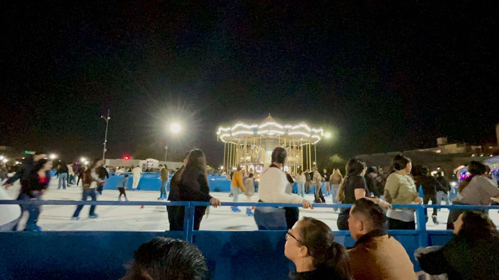 La pista de hielo, la cual tiene un costo de 130 pesos por persona, se encuentra instalada en la Plaza del Ángel y cuenta con una superficie de mil 500 metros cuadrados y capacidad para 300 personas por hora. Decenas de niños y adultos disfrutan del patinaje, Sin embargo, la popular atracción permanecerá cerrada el 24 de diciembre.
