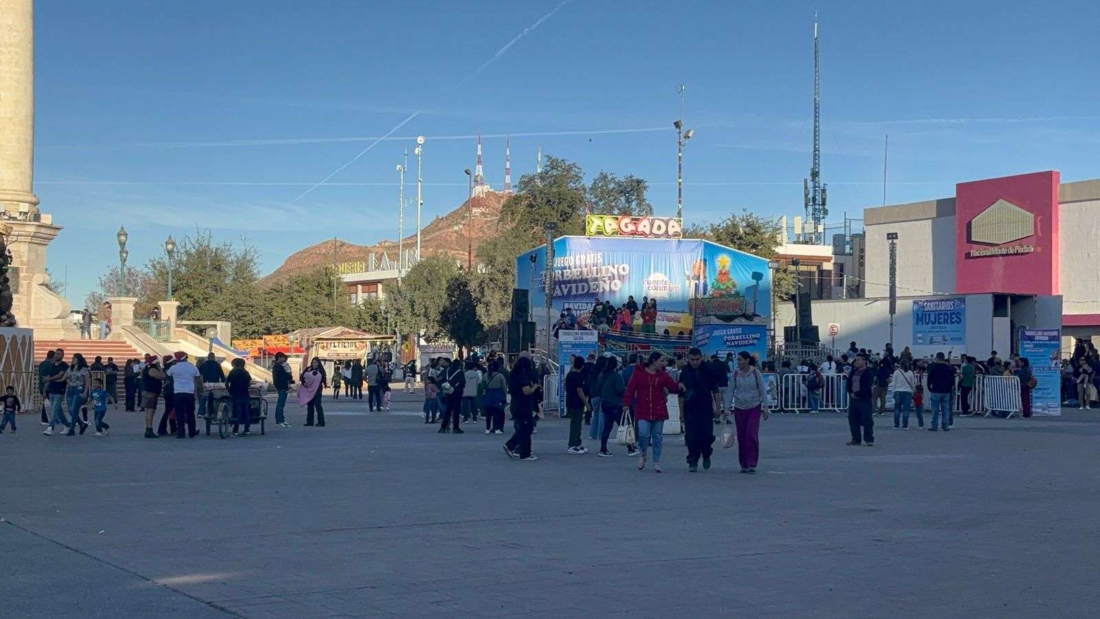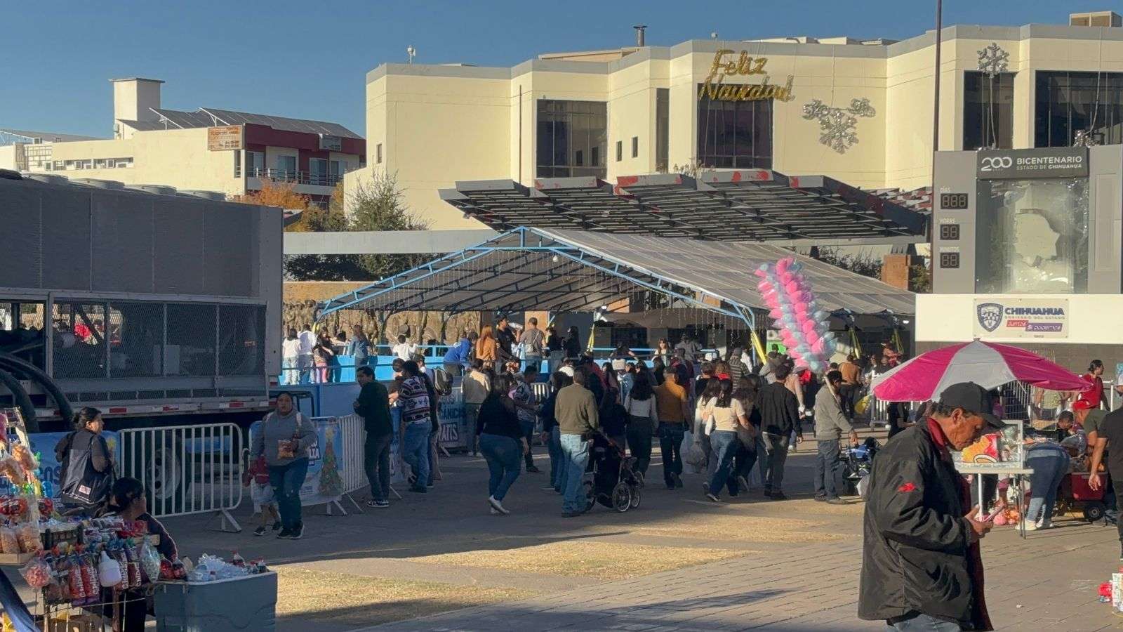 Chihuahua.- Cientos de chihuahuenses acudieron a la Plaza Mayor o Plaza del Ángel a disfrutar de las atracciones que se encuentran en dicho sitio.