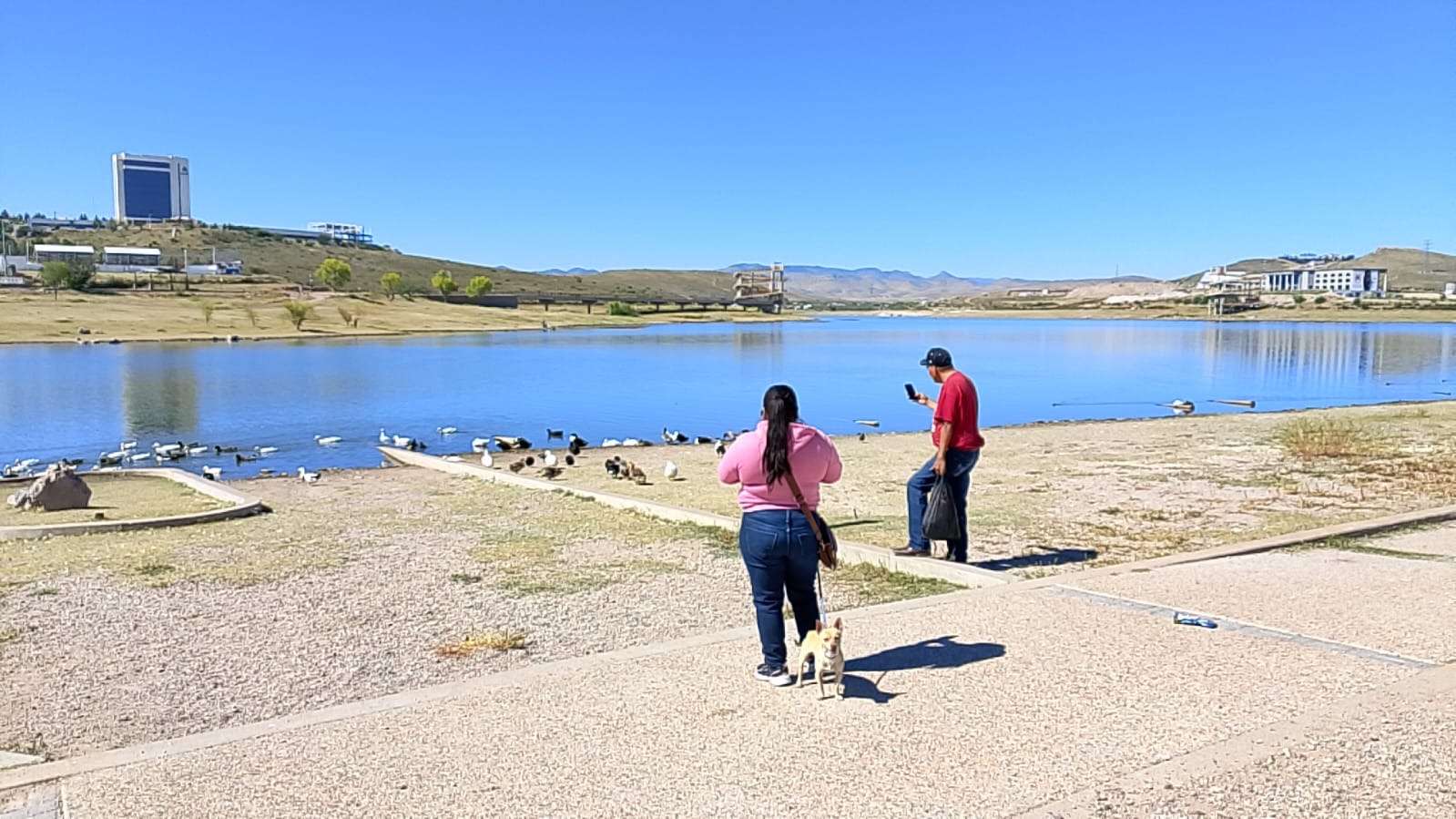 Chihuahua.- Decenas de familias acudieron este domingo a la presa El Rejón para disfrutar de un día soleado al aire libre.