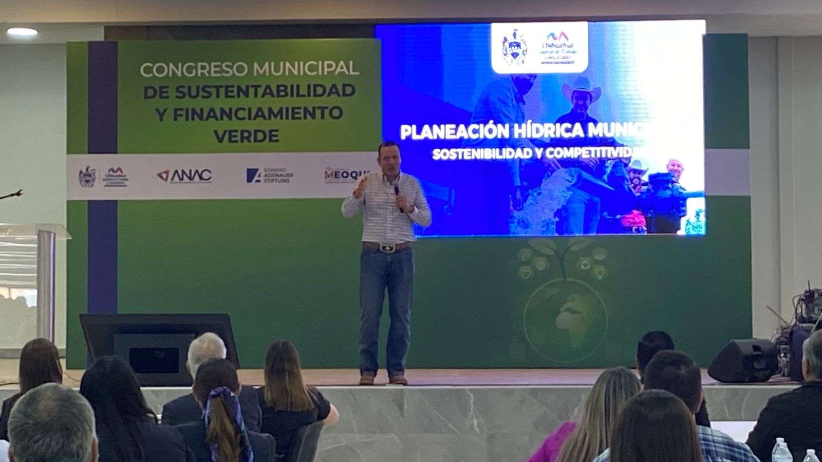 Chihuahua.- En el municipio de Meoqui se celebró el Congreso Municipal de Sustentabilidad y Financiamiento Verde, evento que reunió a líderes locales como el alcalde de Chihuahua, Marco Antonio Bonilla Mendoza, quien tuvo una destacada participación; la alcaldesa anfitriona, Miriam Soto; y Hans-Hartwig Blomeier, representante de la Fundación Konrad Adenauer en México.