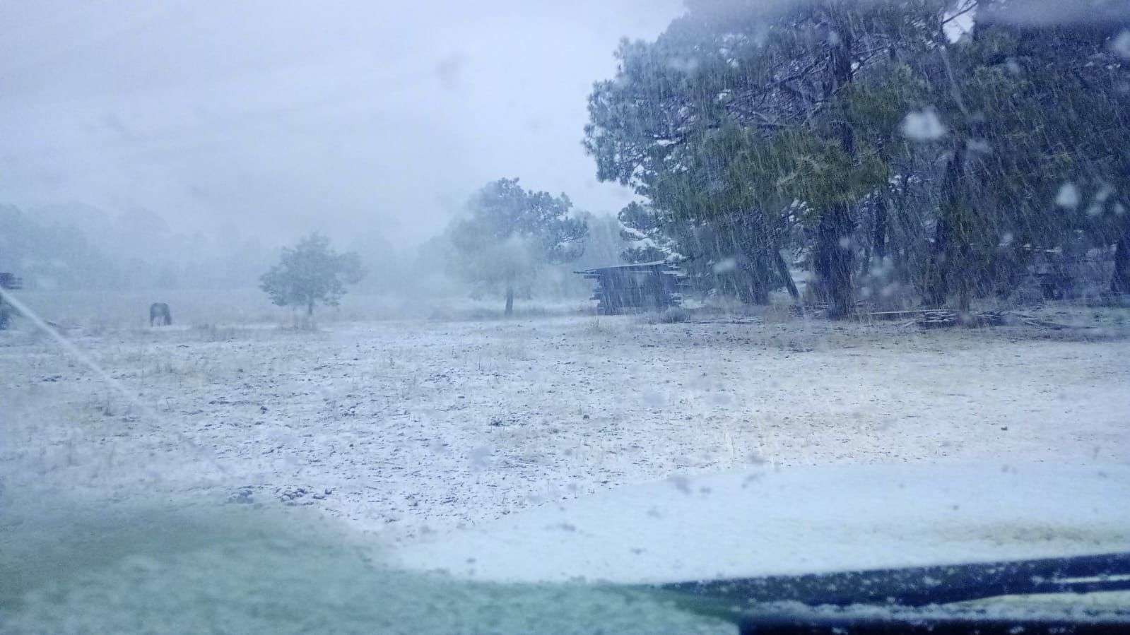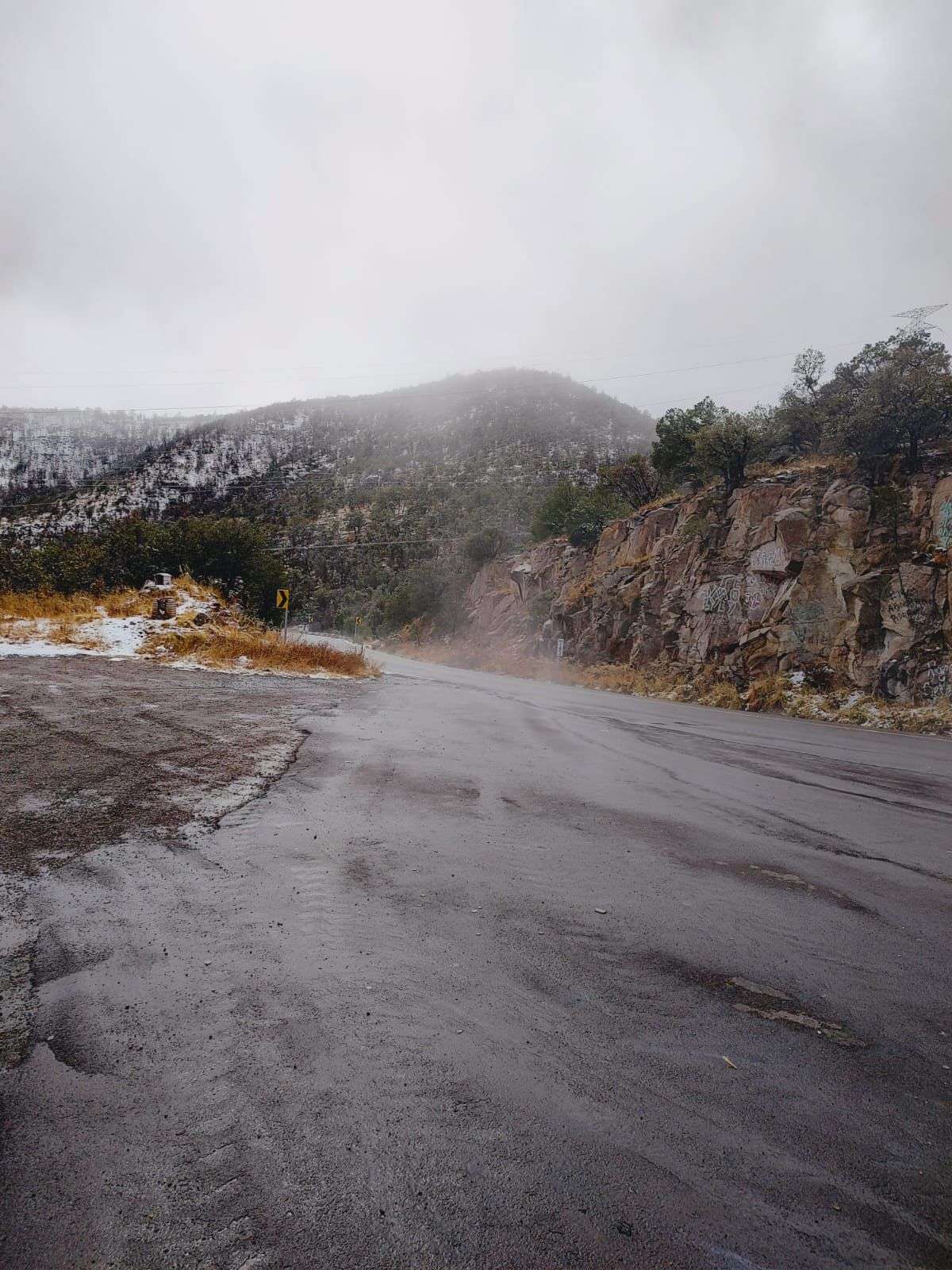 Durante esta tarde, la Secretaría de Infraestructura, Comunicaciones y Transportes reportó el cierre de la carretera Parral–Guadalupe y Calvo, a la altura del kilómetro 119, por acumulación de aproximadamente 10 centímetros de nieve.