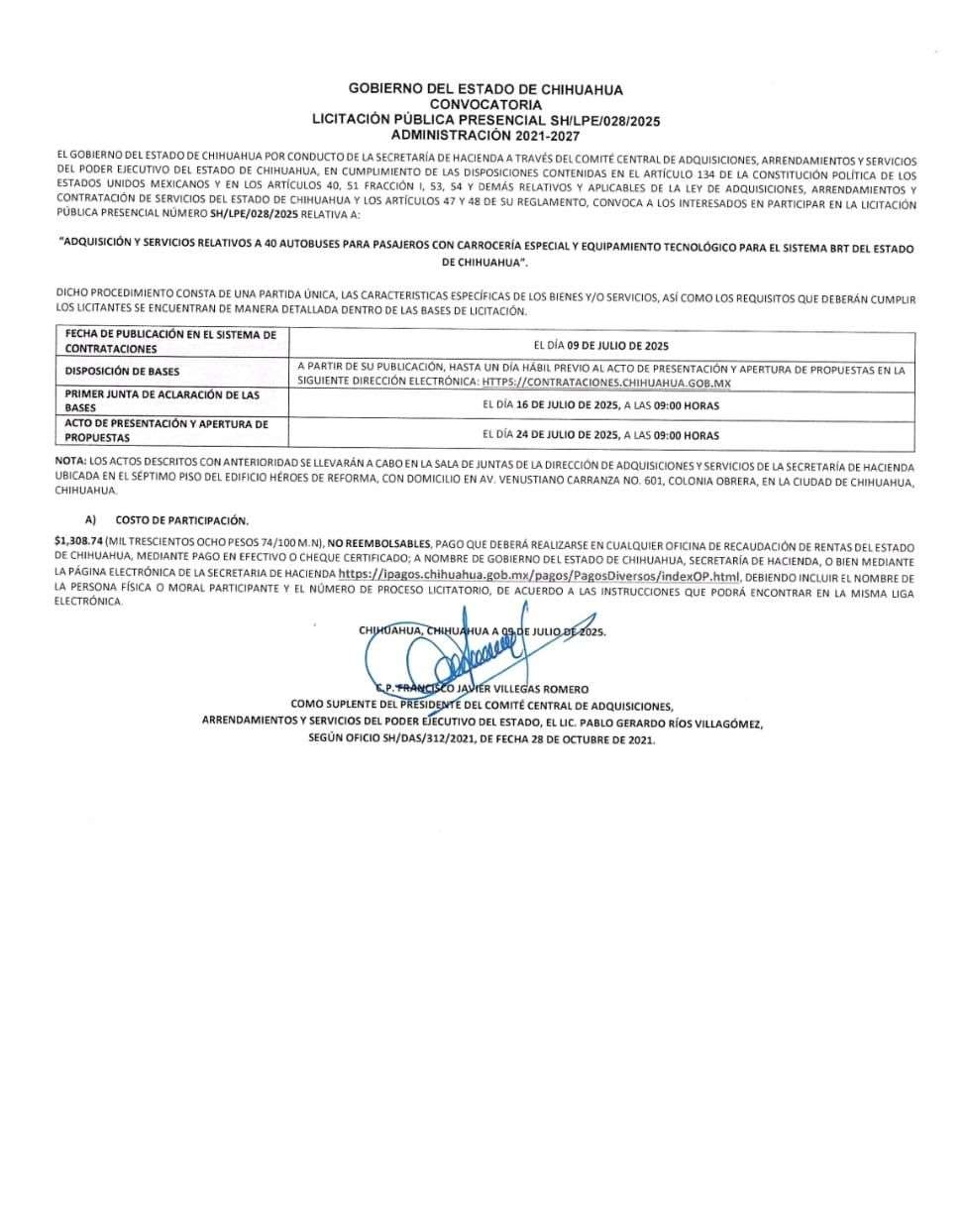 Chihuahua.– El Gobierno del Estado anunció la emisión de la licitación SH/LPE/028/2025 para la adquisición de 40 nuevos autobuses que reforzarán el servicio de transporte público de la Ruta Troncal, parte del Sistema BRT en la capital.