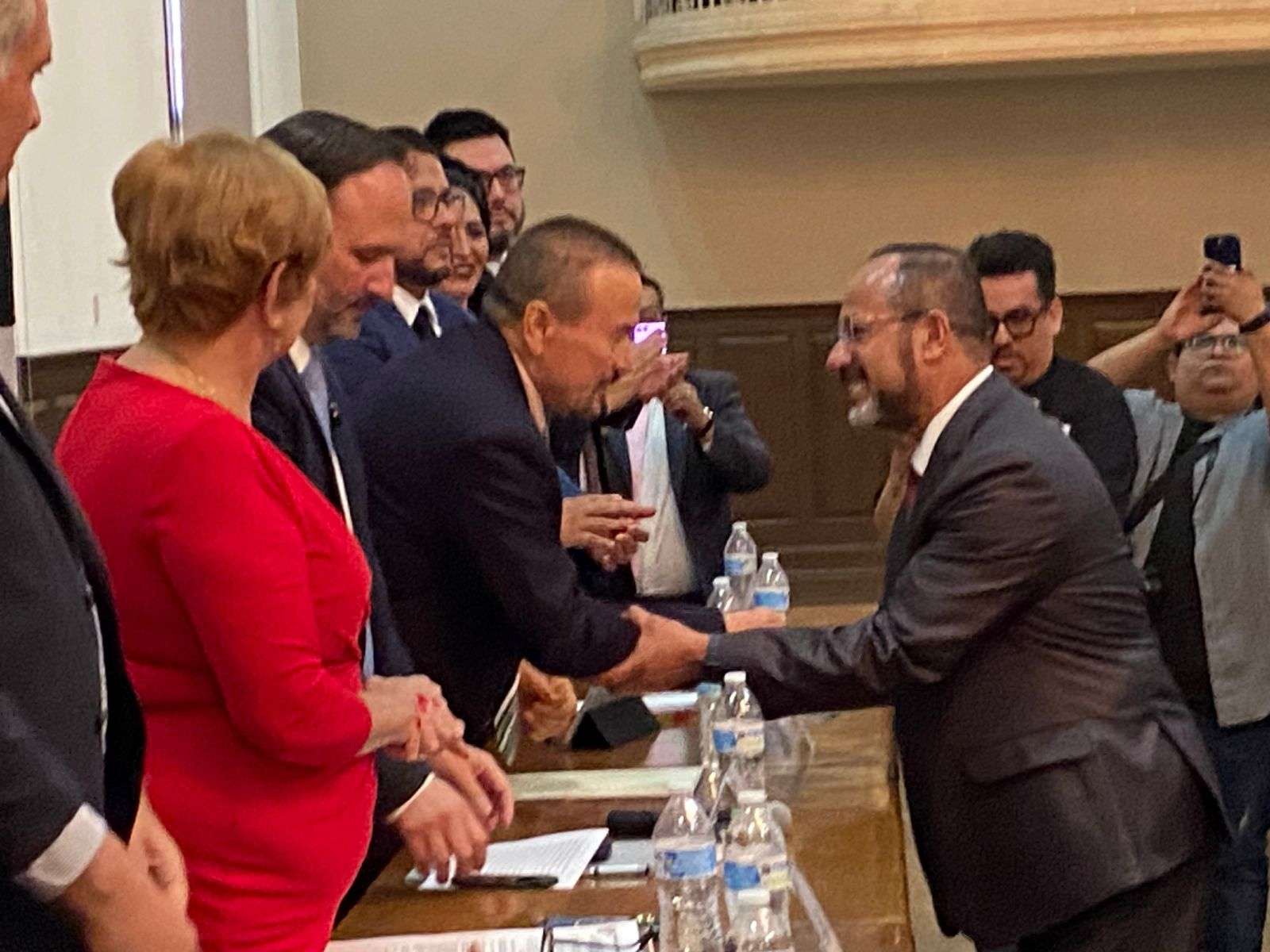 El Secretario General de Gobierno Santiago de la Peña, felicitó a la mesa directiva saliente que sin ningún sobresalto realizaron muchas cosas por su gremio y señaló que fue un honor acompañarlos en este relevo institucional.