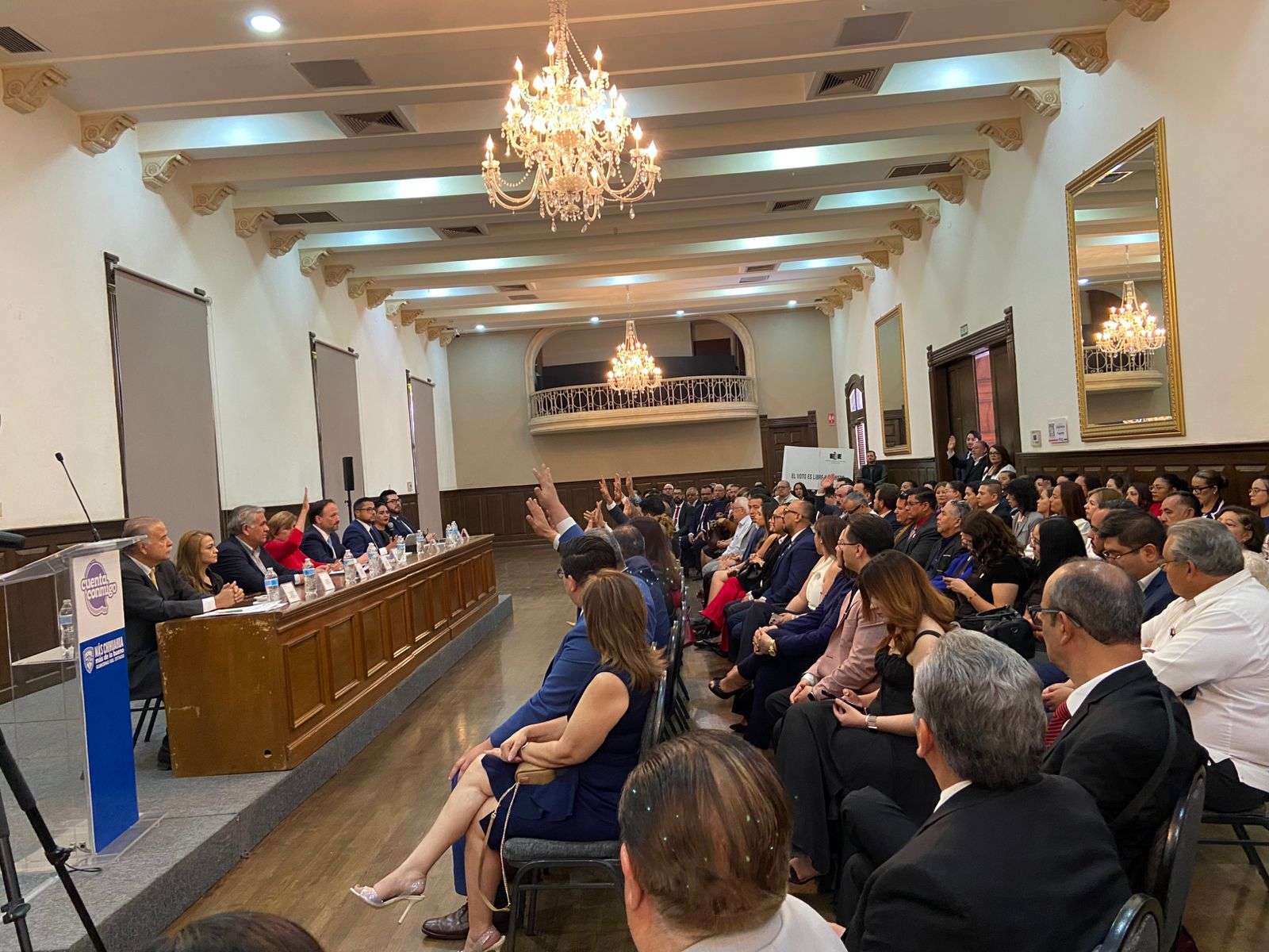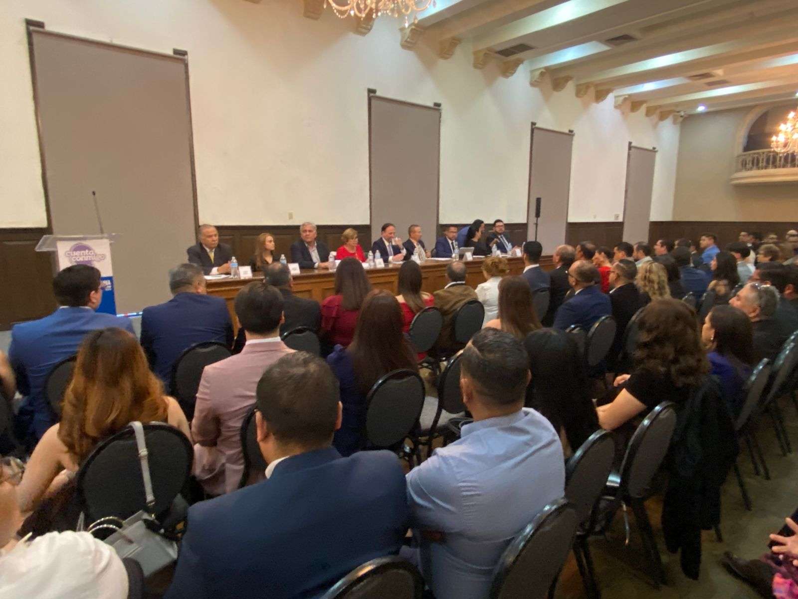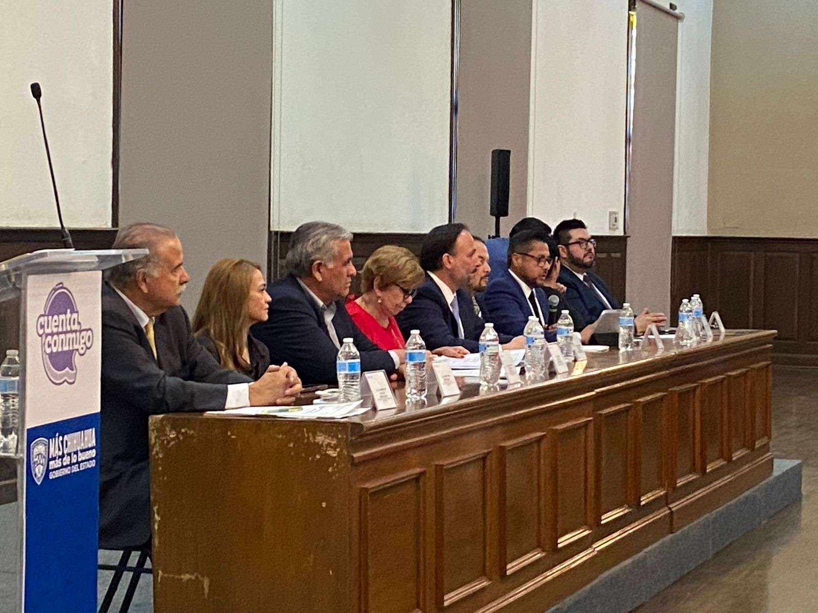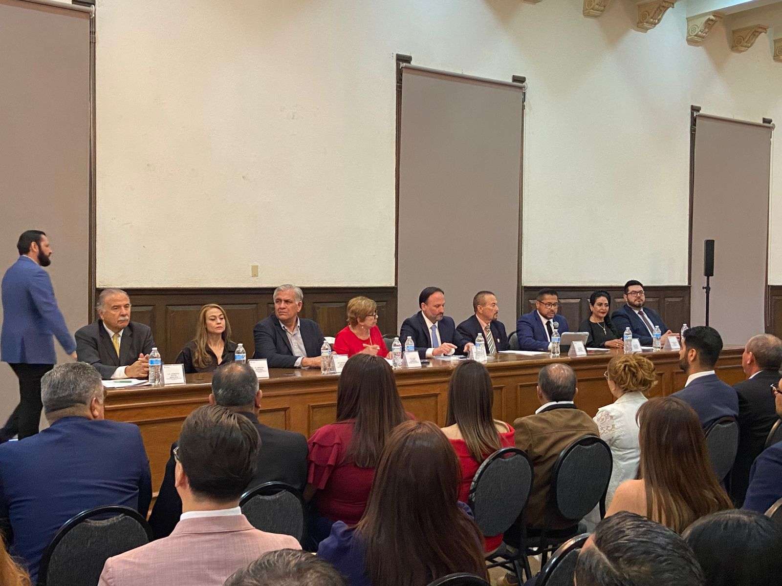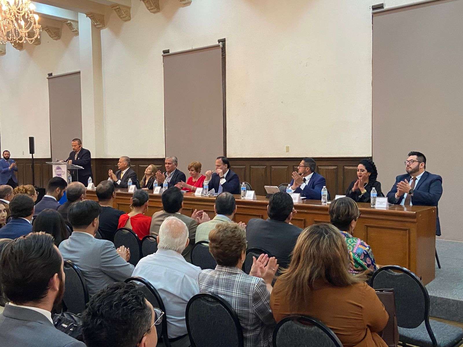 En el presidium estuvieron presentes Ernesto Avilés Mercado presidente del comité de elecciones de la Fechca, Santiago de la Peña Grajeda Secretario General de Gobierno, Mireya Borunda presidenta nacional de la federación mexicana de abogados,Arturo García Portillo Jefe de Gabinete de la presidencia municipal, Alba Flores Domínguez Presidenta del Colegio de Juristas Jorge Mazpulez Pérez A.C., Darío Machuca Alvarado Presidente de la Fechca, Pilar Emilia García Vicepresidenta de la Fechca, Ever Hernández Valencia Secretario General de la Fechca y Adalberto Vences Baca Magistrado del Tribunal Superior dé Justicia.