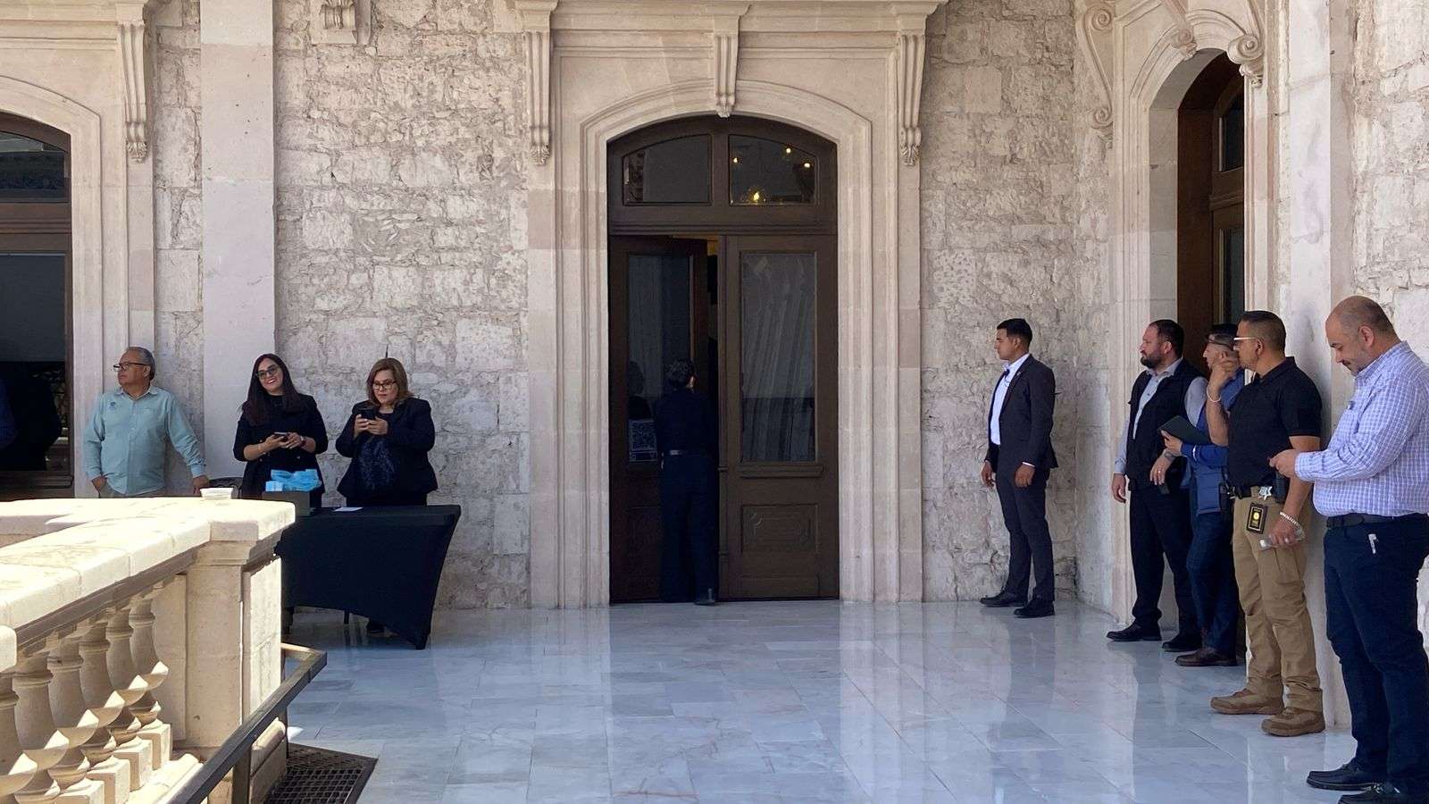 Chihuahua.- La gobernadora del estado, María Eugenia Campos Galván, convocó a una reunión de gabinete a la que asistieron todos los miembros de su equipo, quienes llegaron uno a uno para participar en la sesión.