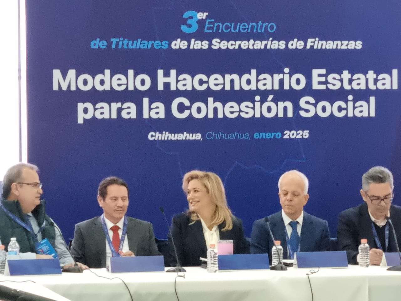 Chihuahua.- La gobernadora del Estado Maria Eugenia Campos Galván, encabezó el Tercer Encuentro de Titulares de las Secretarías de Finanzas del Modelo Hacendario Estatal para la Cohesión Social, el cual se llevó a cabo en el Hotel Maria Bonita este 30 y 31 de enero.