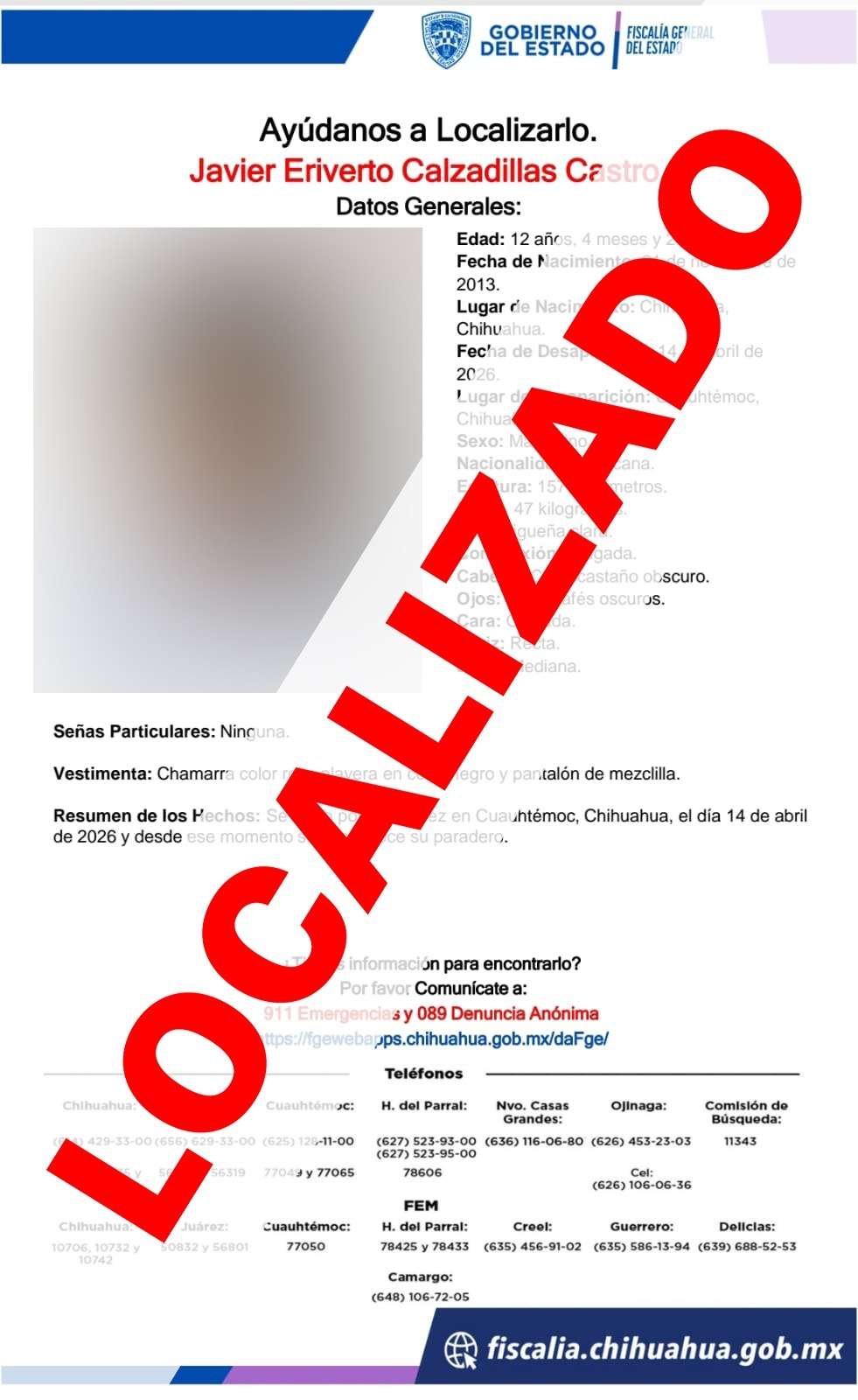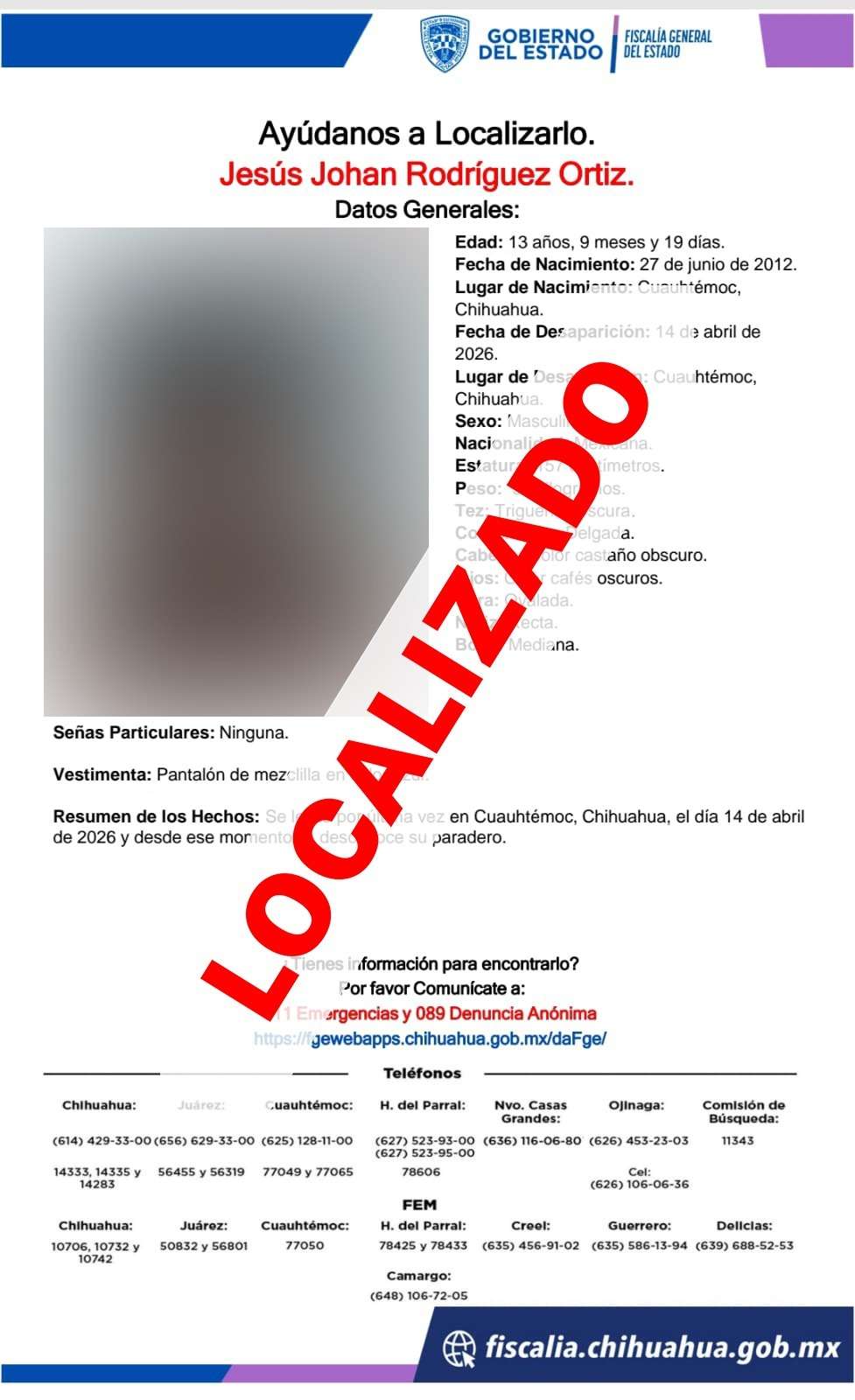 La Fiscalía General del Estado trabaja de manera permanente en la búsqueda y localización de personas desaparecidas, a fin de brindar tranquilidad y certeza a sus familias.