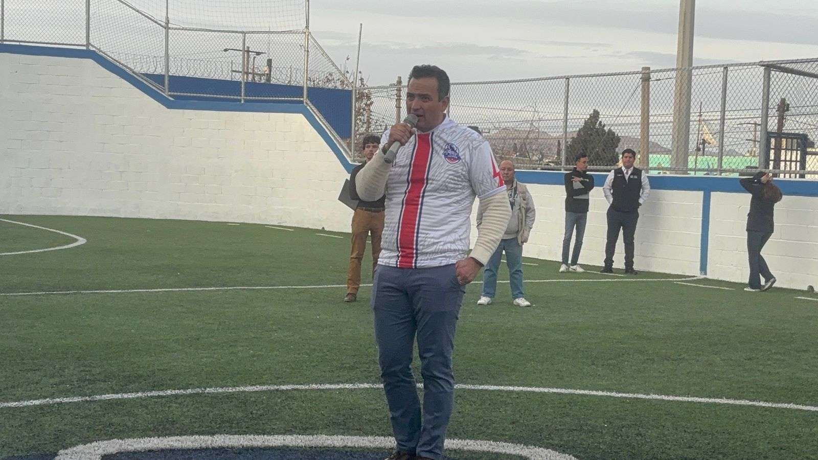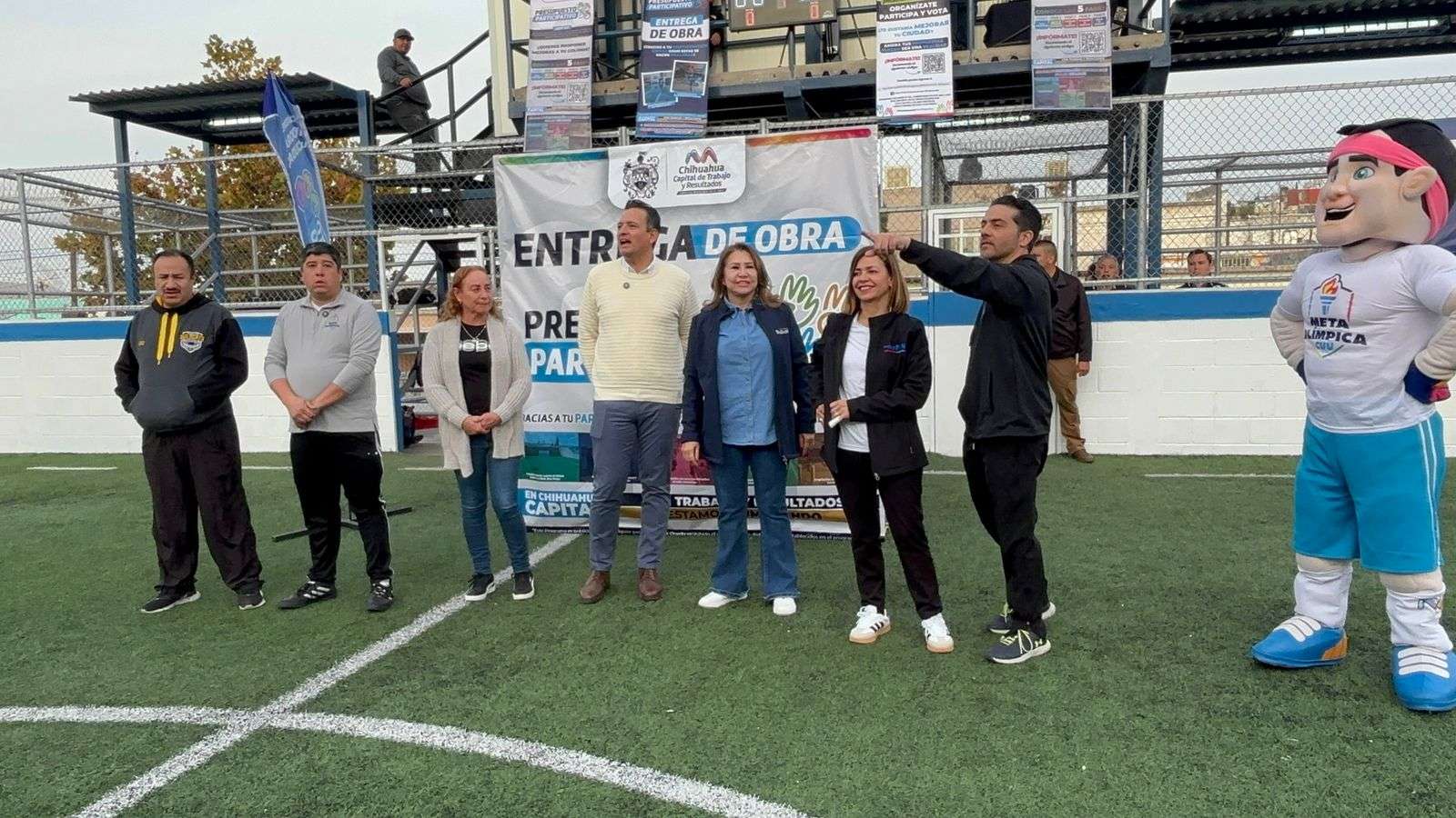 Chihuahua, Chih.- El alcalde de Chihuahua presidió la entrega de la obra de rehabilitación de la cancha e instalaciones Parque Lomas Karike, realizada a través del programa de Presupuesto Participativo.
