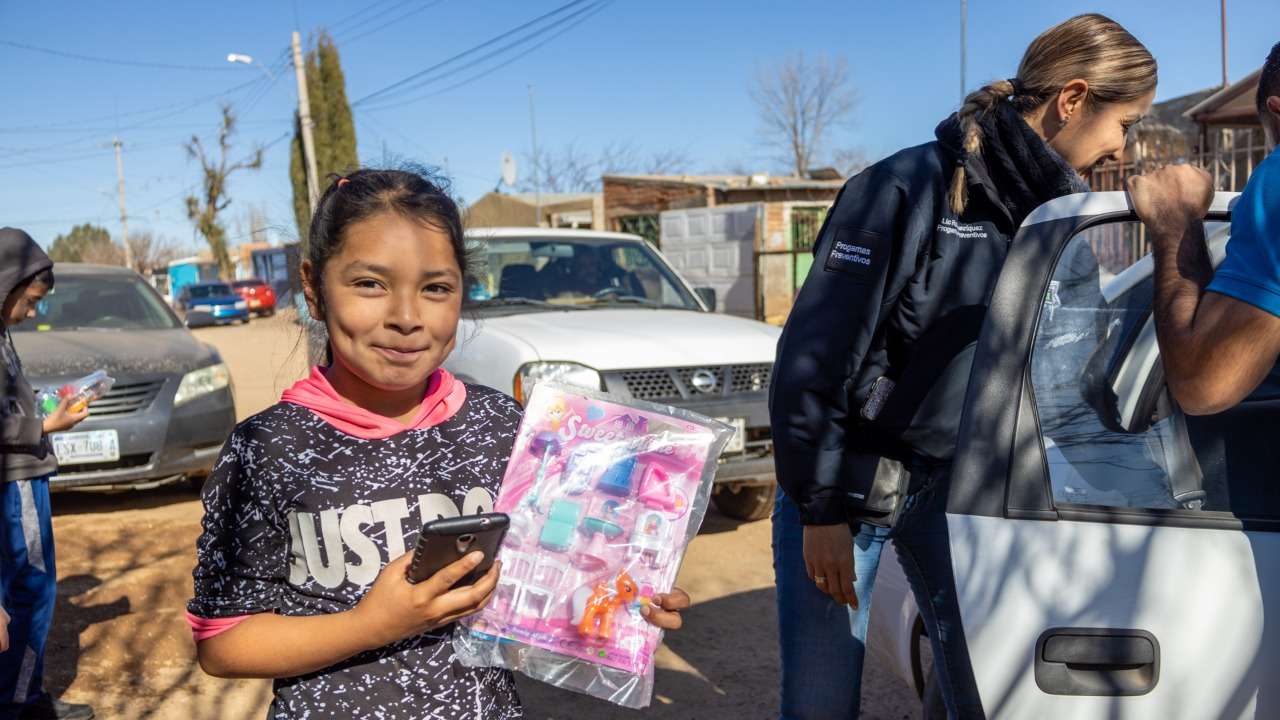 Cuauhtémoc.- La Dirección de Seguridad Pública Municipal a través del área de Programas Preventivos, realizó la entrega de cientos de juguetes a niños y niñas de familias de la ciudad. Gracias a la generosidad de empresarios, escuelas, organizaciones de la sociedad civil y particulares, fue posible llevarles un regalo a quienes más lo necesitaban.