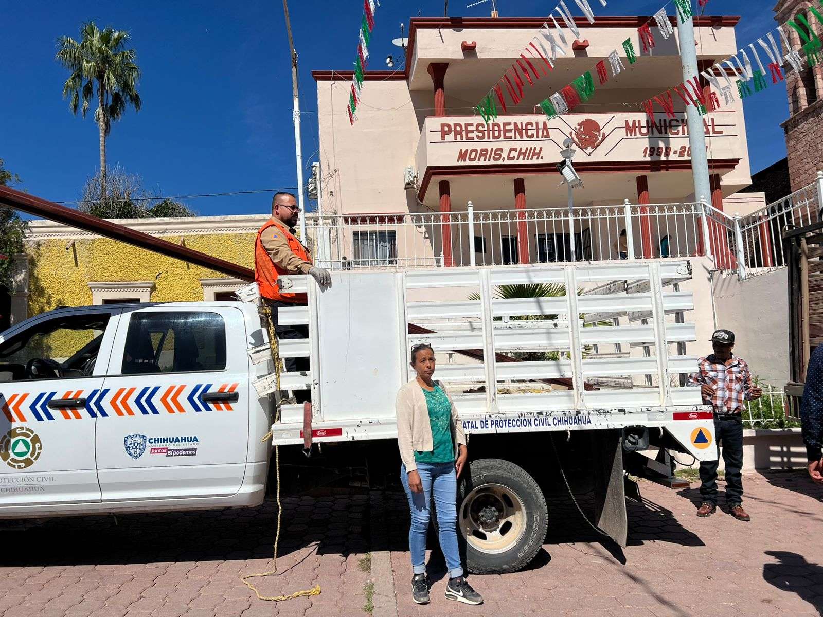 Chihuahua.- El Gobierno del Estado de Chihuahua, a través de la Coordinación Estatal de Protección Civil (CEPC) y en coordinación con la Secretaría General de Gobierno, realizó la entrega de apoyos a familias de la localidad de El Pilar, en el municipio de Moris, por las recientes lluvias registradas en la región.