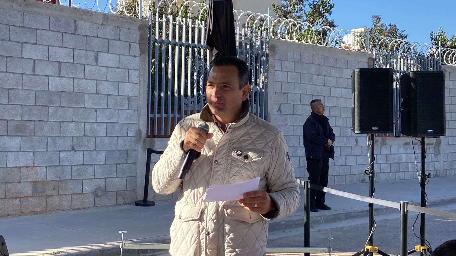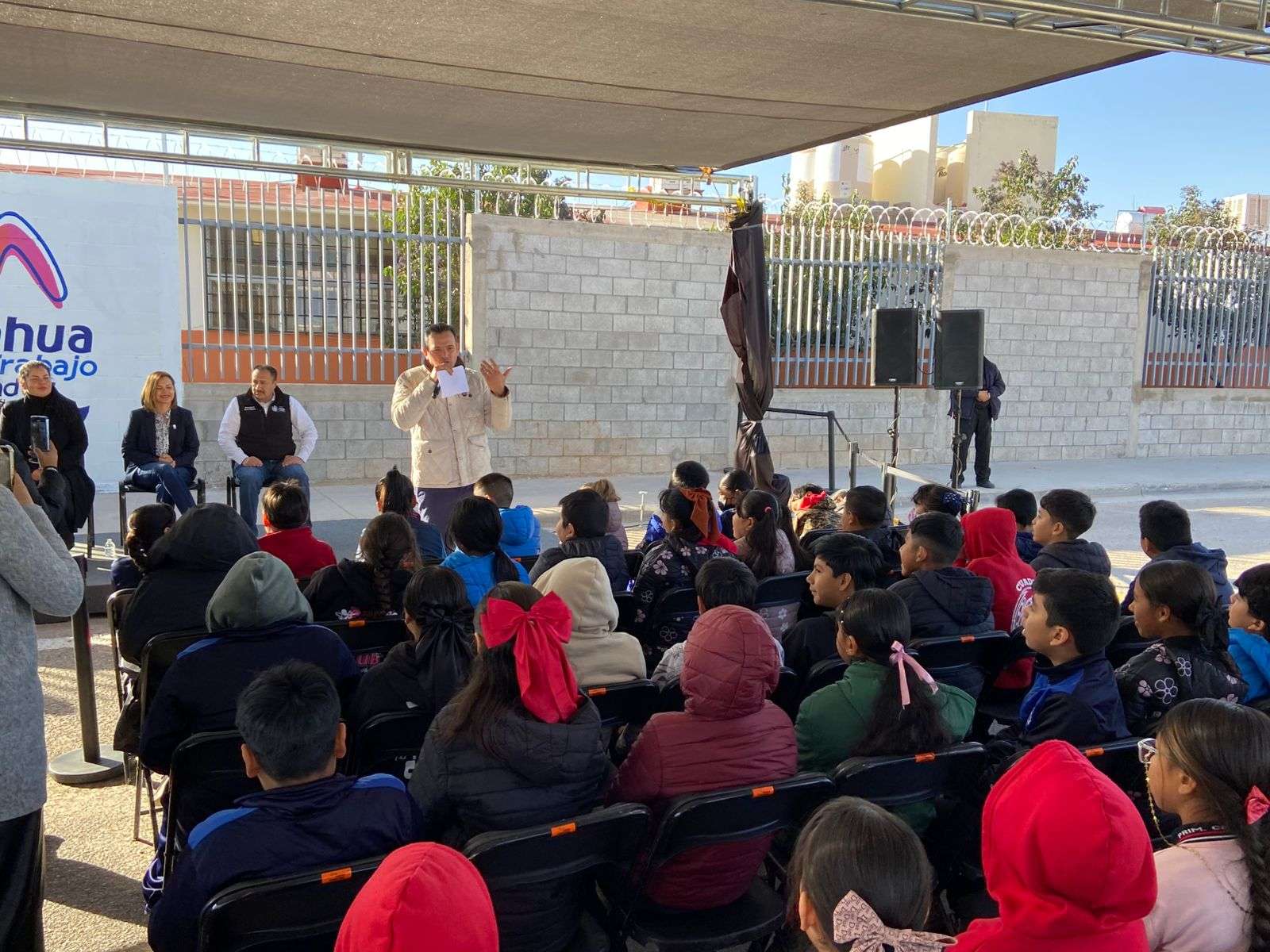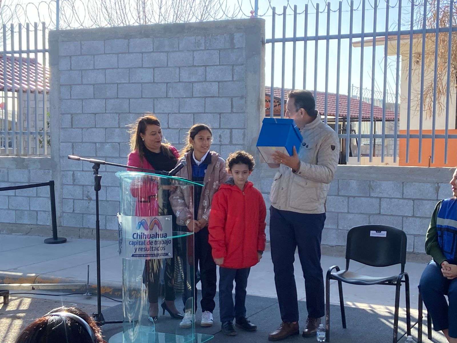 Chihuahua.- El alcalde Marco Antonio Bonilla Mendoza, encabezó la entrega de la construcción de una barda perimetral en la escuela Cecilio Polanco Nava, ubicada en la colonia Vistas del Norte, obra ganadora del presupuesto participativo 2025, lo que permitió atender una necesidad prioritaria de la comunidad escolar.