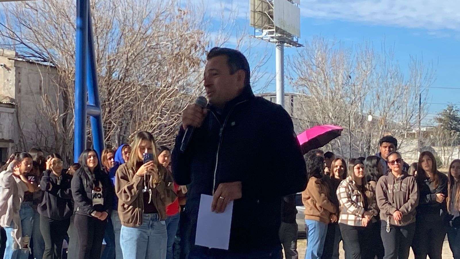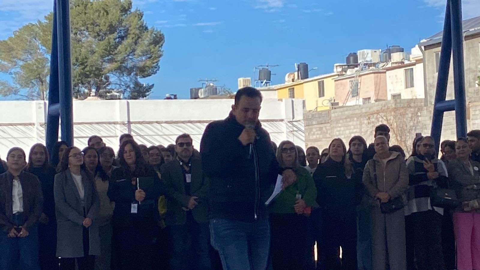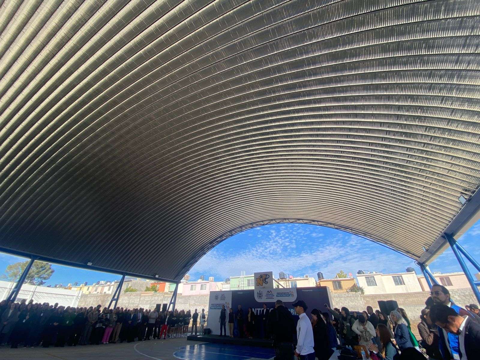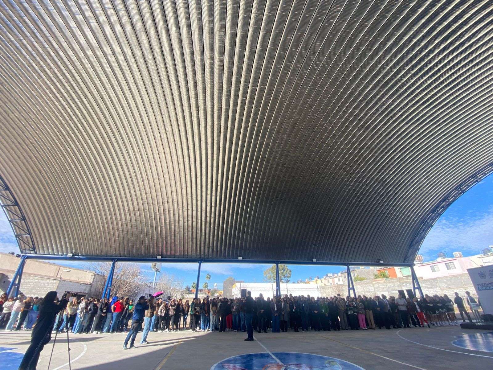 Chihuahua.- El alcalde Marco Antonio Bonilla Mendoza, encabezó la entrega de la obra ganadora del presupuesto participativo 2025, la cual consistió en la construcción de un domo en el patio de la Benemerita y Centenaria Escuela Normal de Chihuahua y unos merenderos al interior del plantel.