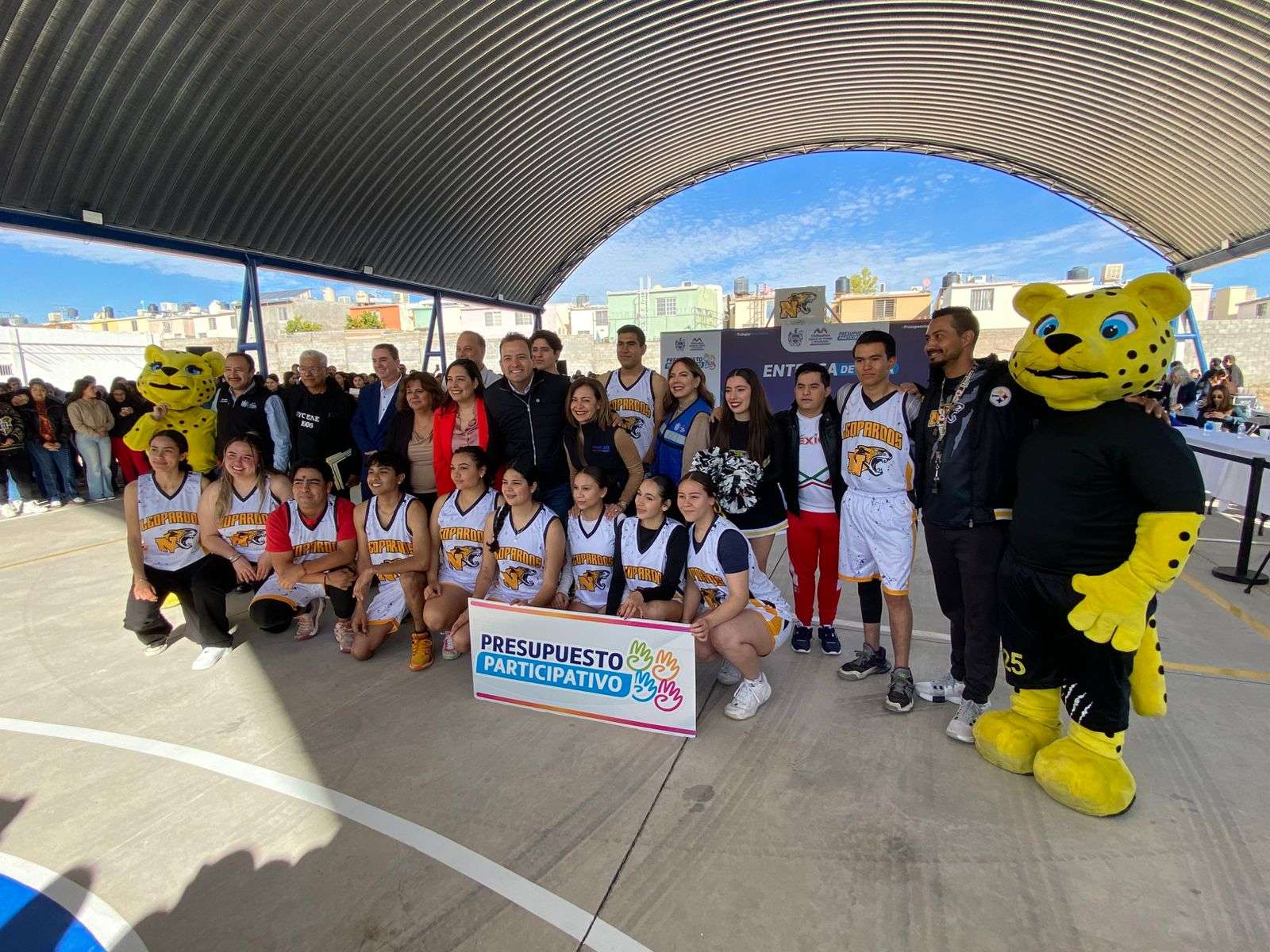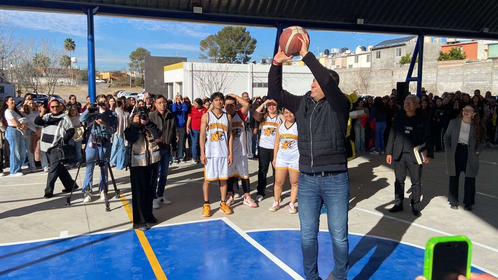 Inaugura Marco Bonilla obra con cascarita de básquet