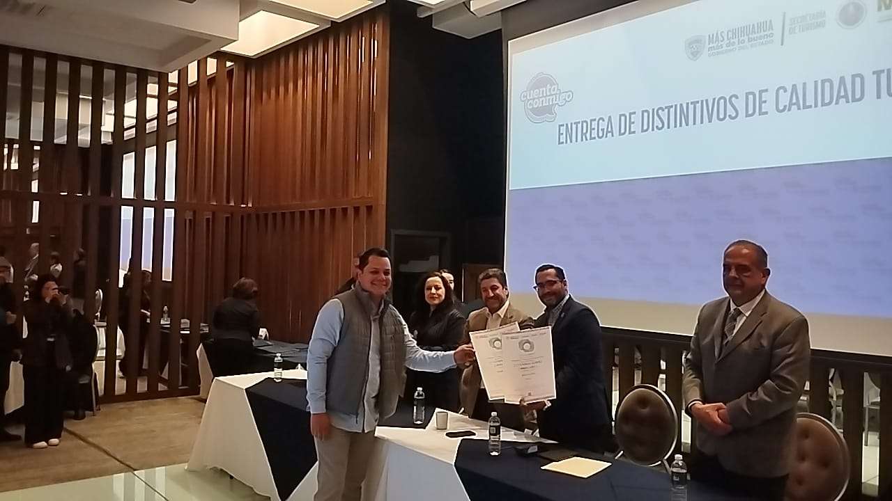 Chihuahua, Chih.- Esta mañana, el director de Desarrollo Económico y Competitividad, José Jesús Jordán Orozco, encabezó la entrega de distintivos de calidad turística, otorgando certificaciones en los programas Punto Limpio, Turismo Incluyente y Moderniza.