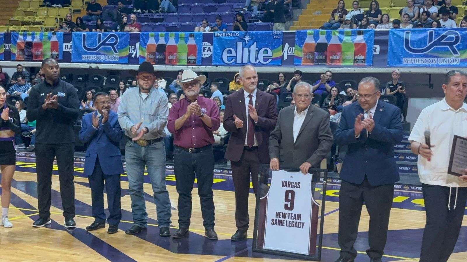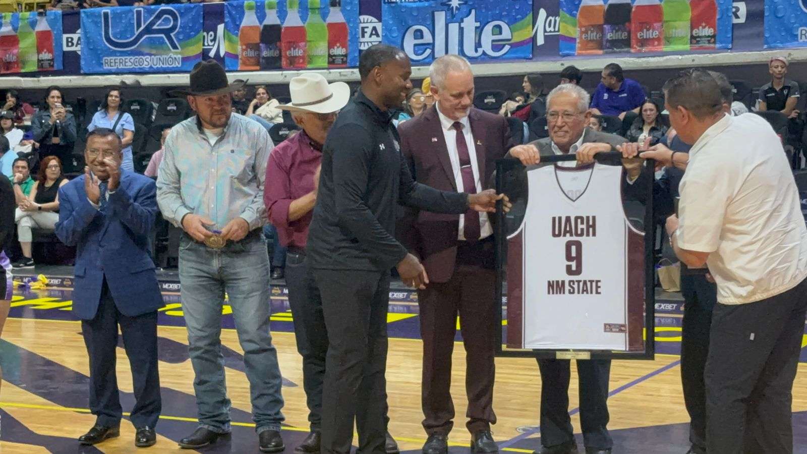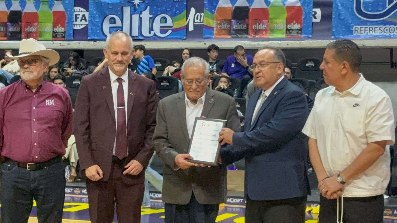 Además del reconocimiento al egresado de la Máxima Casa de Estudios de la Uach y exbasquetbolista, se le entregó un jersey, con el que se conmemoran los 67 años de aquel juego binacional entre ambos equipos.