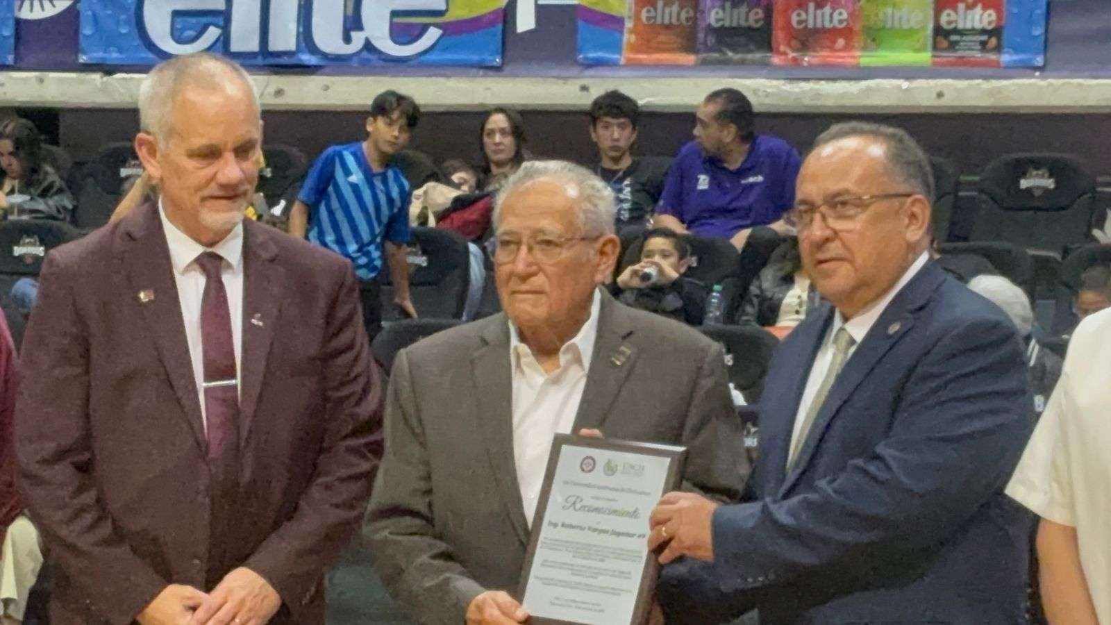 El rector de la Uach dijo que era un honor entregarle el reconocimiento y el jersey conmemorativo a una persona que ha sido un ejemplo de promoción del deporte en Chihuahua, Don Roberto Vargas.