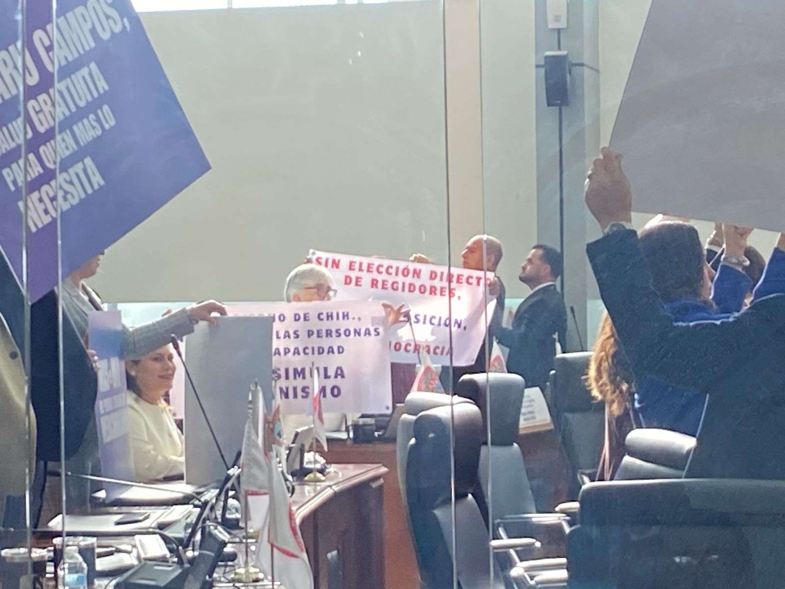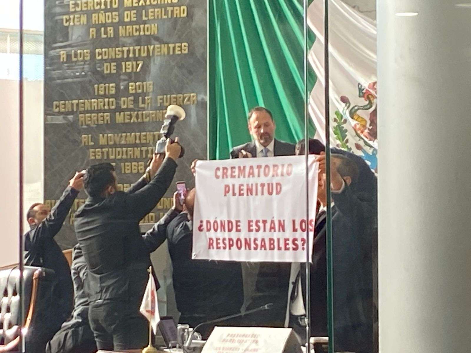 Durante el acto de entrega diputados del PAN como de Morena se manifestaron con pancartas, los de Morena exigiendo justicia para las familias del crematorio Plenitud y los del PAN, en apoyo a la Gobernadora Maru Campos.