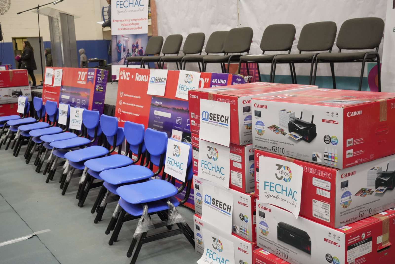 Franghie Khalil Marlen, presidenta del consejo local de Fechac Delicias, señaló que el objetivo central de esta entrega es dignificar los espacios de aprendizaje para potenciar las habilidades del alumnado.