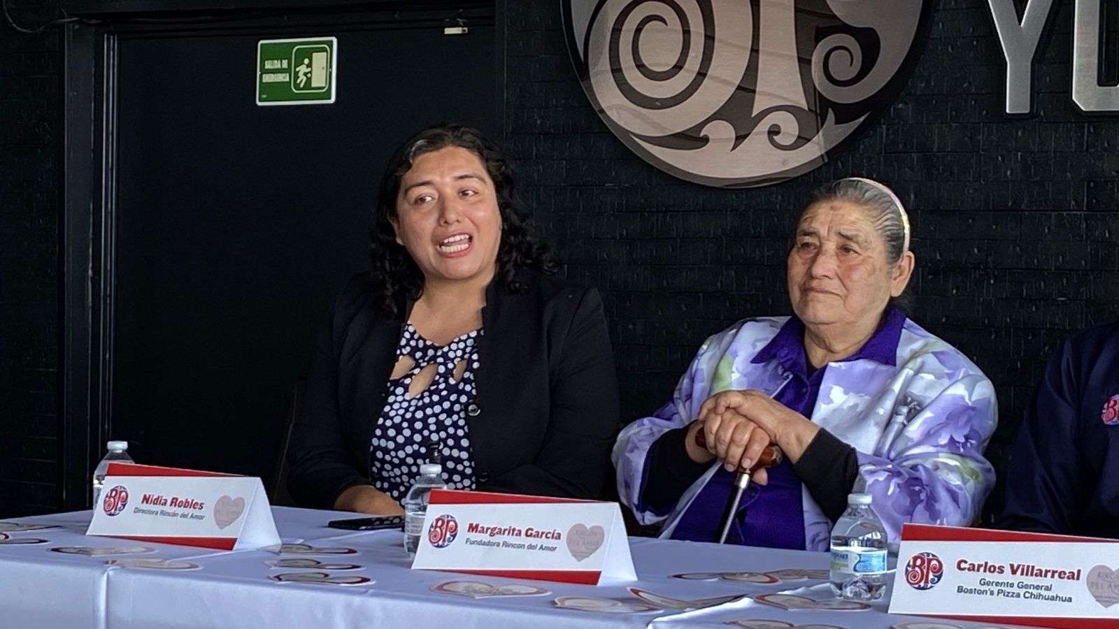 La señora Margarita García, quien es fundadora de esta Casa Hogar recibió de manos del gerente general de Boston's Pizza Carlos Villarreal y de Ana Castillo Gerente de Marketing el cheque del donativo.