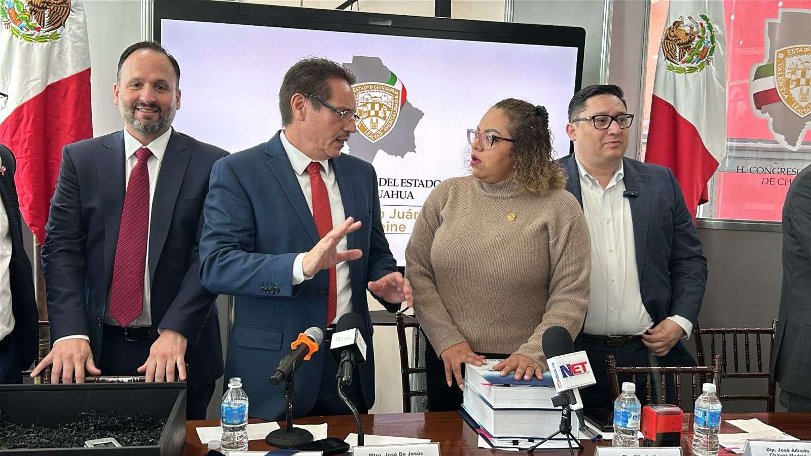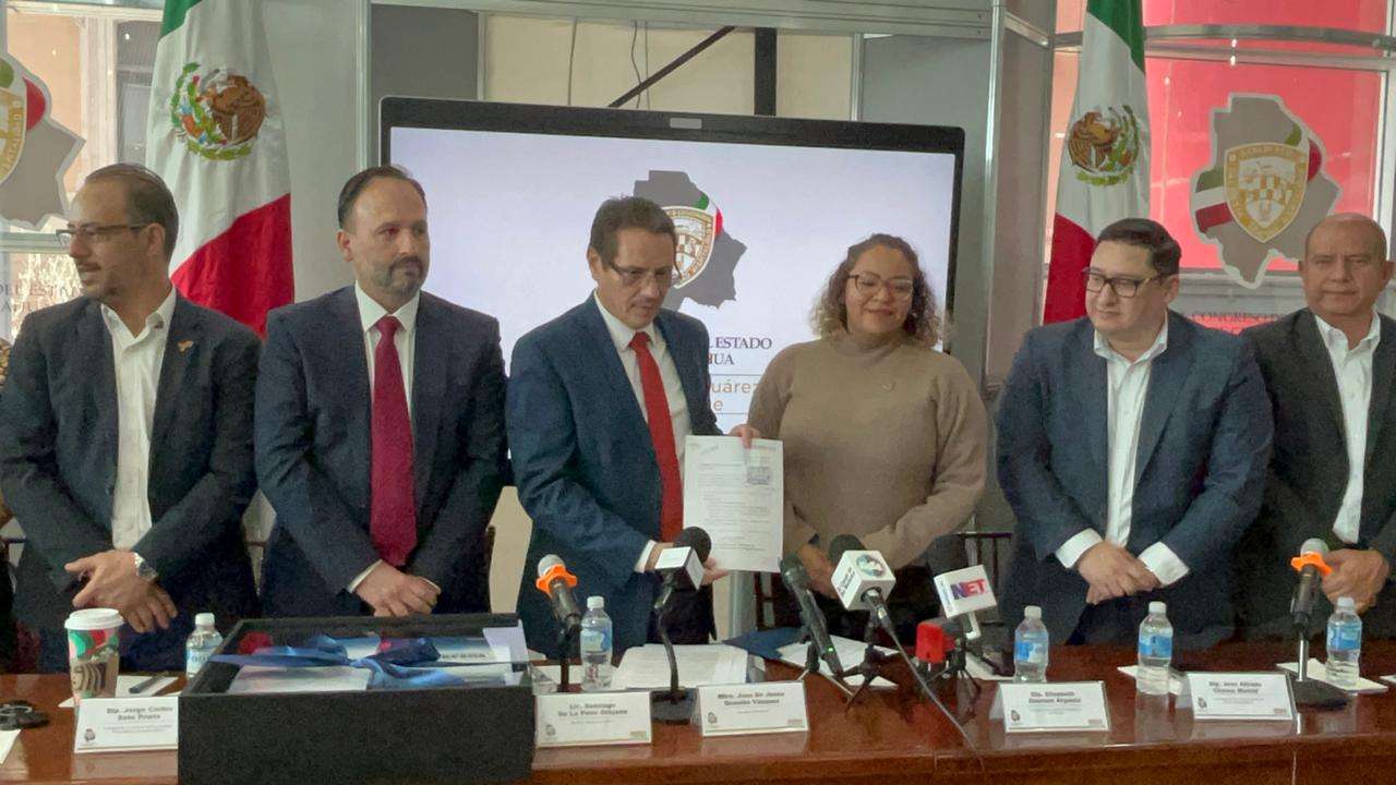 Chihuahua.-El secretario general de Gobierno, Santiago de la Peña, acompañado del secretario de Hacienda del Estado, José de Jesús Granillo Vázquez, entregaron al Congreso del Estado la propuesta del Paquete Presupuestal para el ejercicio fiscal 2025, que asciende a 107 mil 570 millones 270 mil 653 pesos.
