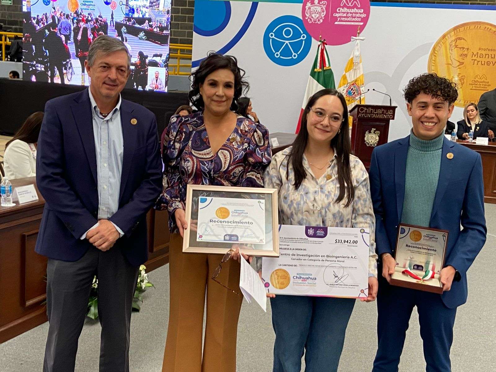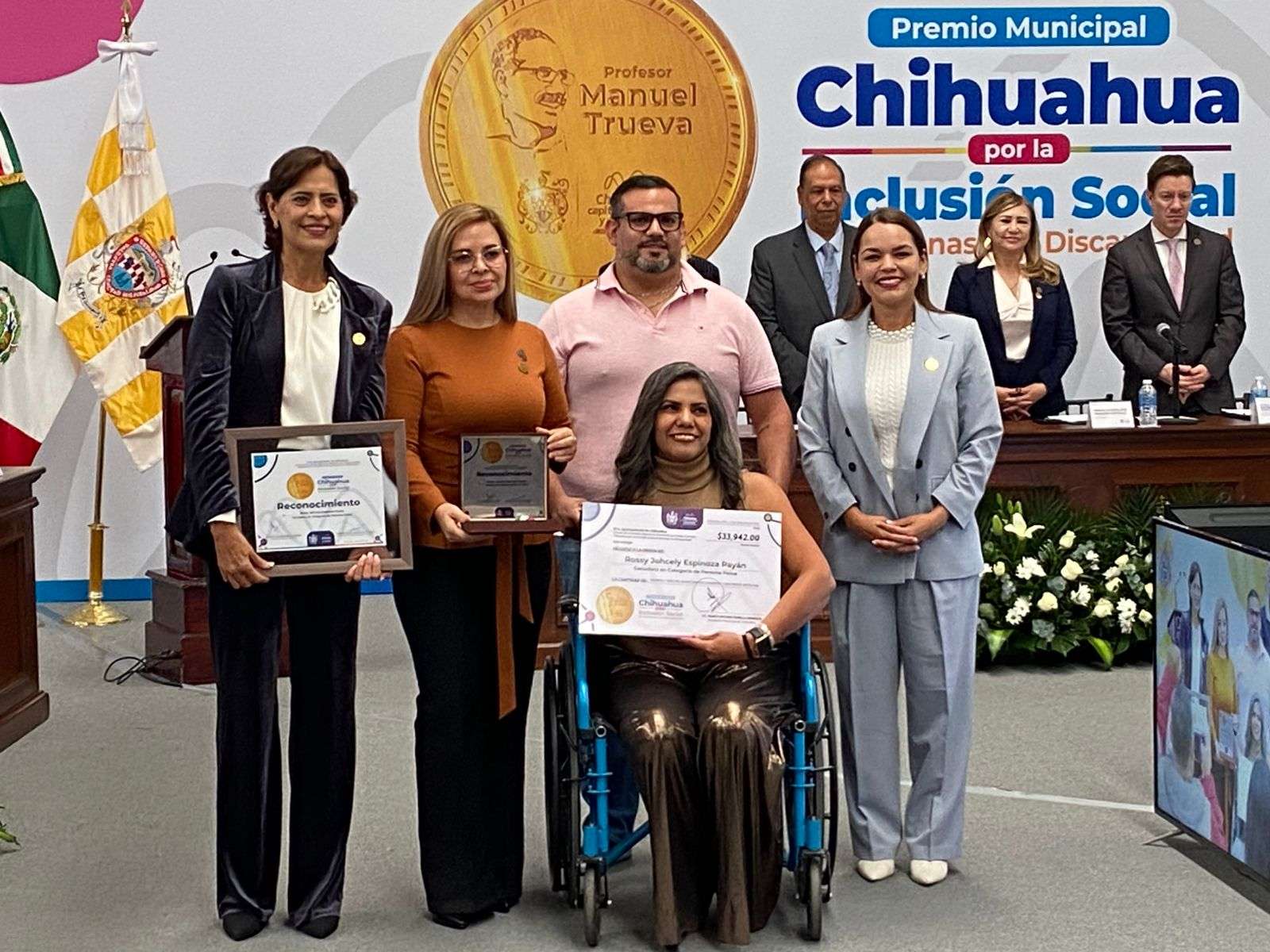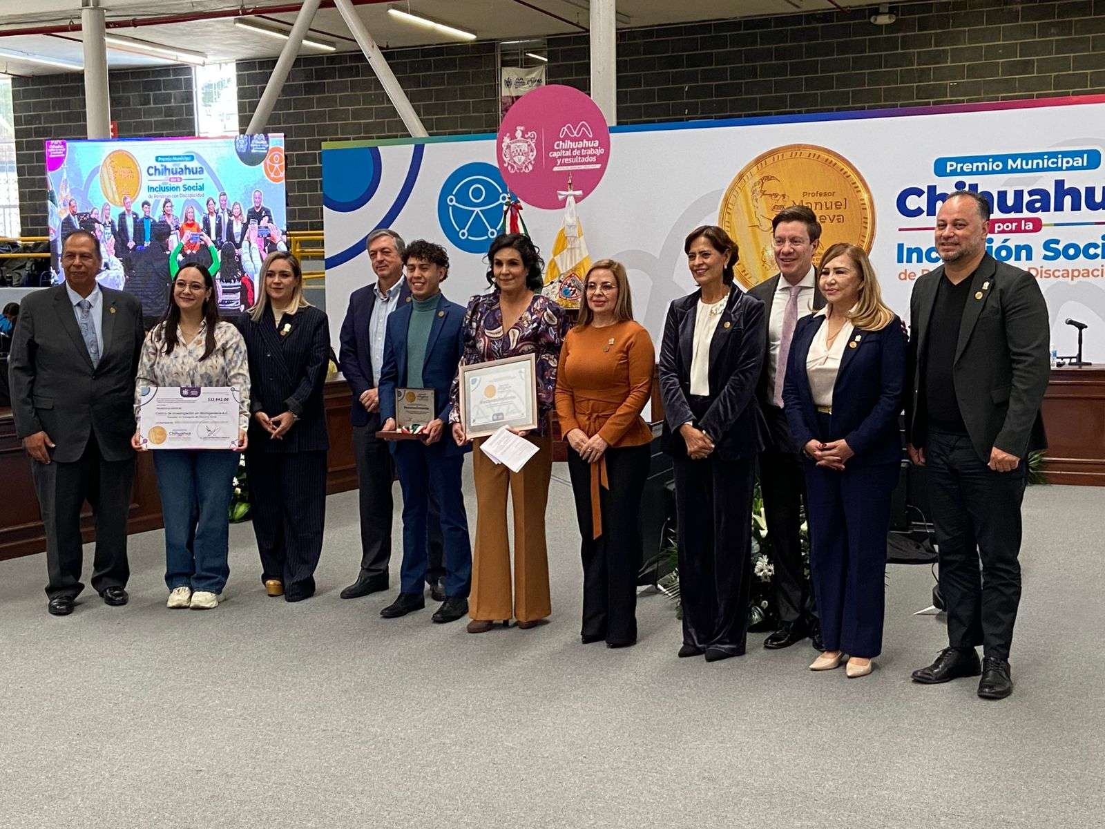 Chihuahua.- En Sesión Solemne de Cabildo se llevó a cabo la entrega del Premio Municipal Chihuahua por la Inclusión Social de Personas con Discapacidad, con el que se reconoce a las personas y organizaciones de la sociedad civil que trabajan a favor de los derechos de las personas con discapacidad.
