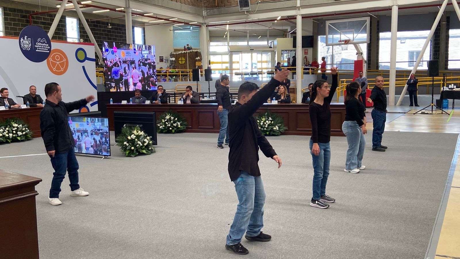 Asimismo, estudiantes del Instituto Down realizaron un bailable para deleitar a los asistentes y autoridades del presidium.