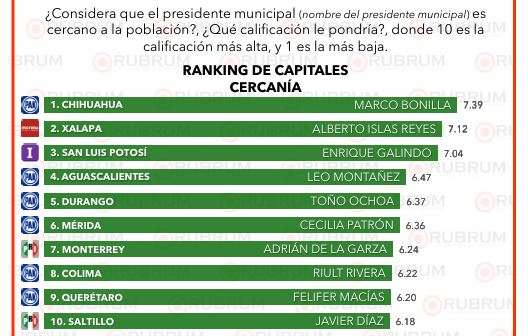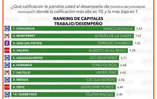RUBRUM evalúa a las y los presidentes municipales de las 31 ciudades capitales del país, donde por vía telefónica, la ciudadanía emite su opinión. Para esta encuesta, se realizaron 600 llamadas de forma automática y aleatoria, a mujeres y hombres de 18 años en delante.
