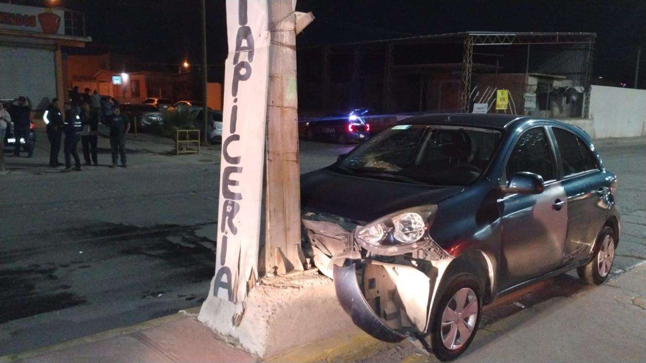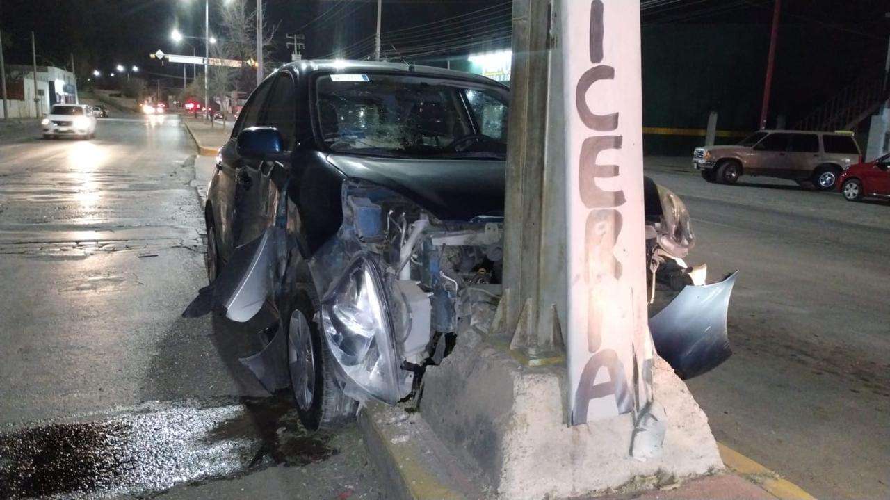 Chihuahua.- Una mujer resultó con heridas leves luego de impactar el auto en el que viajaba contra un poste de concreto.