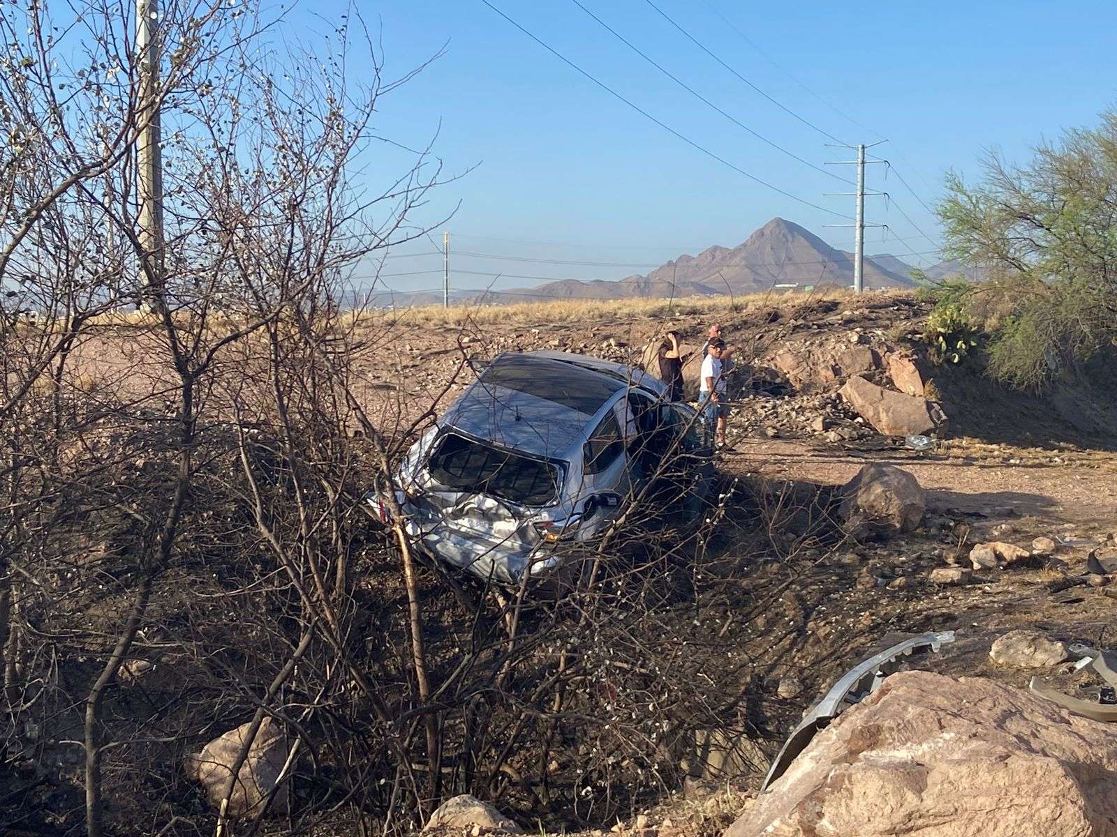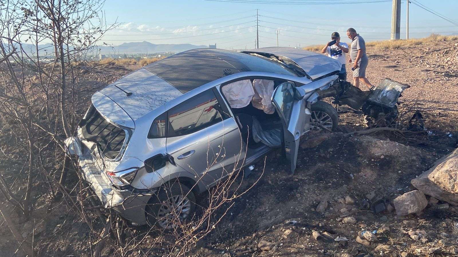 Chihuahua.- Un fuerte choque entre dos autos compactos dejó un saldo de cuatro personas heridas en la carretera a Aldama con dirección a Chihuahua, casi justo a la entrada de un plantel de Bachilleres.