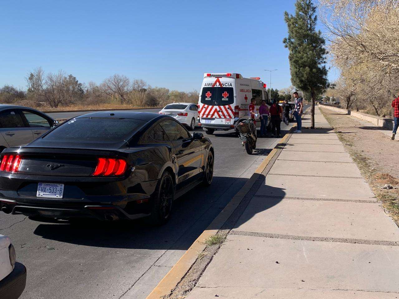 Chihuahua.- Un motociclista resultó con heridas de consideración luego de impactarse contra la parte trasera de un vehículo.