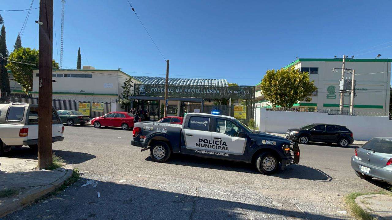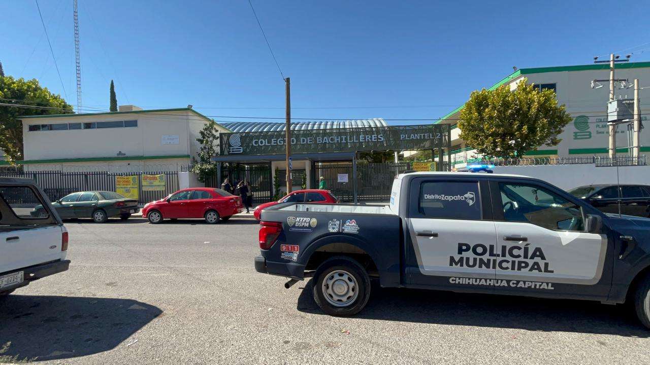 Chihuahua.- Una amenaza de bomba en el Colegio de Bachilleres Plantel 2 generó una fuerte movilización de unidades de emergencia la mañana de este sábado, en la colonia Santa Rosa.