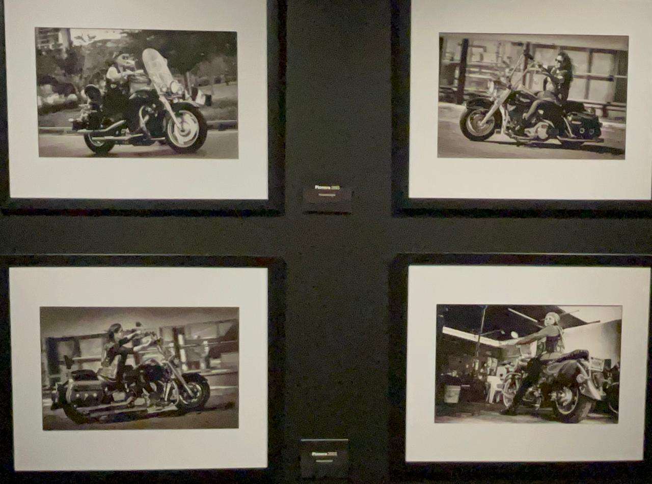 El metal de las motocicletas y la rudeza del asfalto contrastan con lo orgánico de la piel, el cuero y los detalles personalizados de los trajes y cascos. Este juego de texturas crea una narrativa visual de resistencia y fuerza, insubordinación y creación, aludiendo a la fusión entre lo humano y la máquina. Las mujeres bikers no son simplemente conductoras; son amazonas frente a la tecnología mecánica representada por las motocicletas, y este vínculo se plasma en la fotografía.