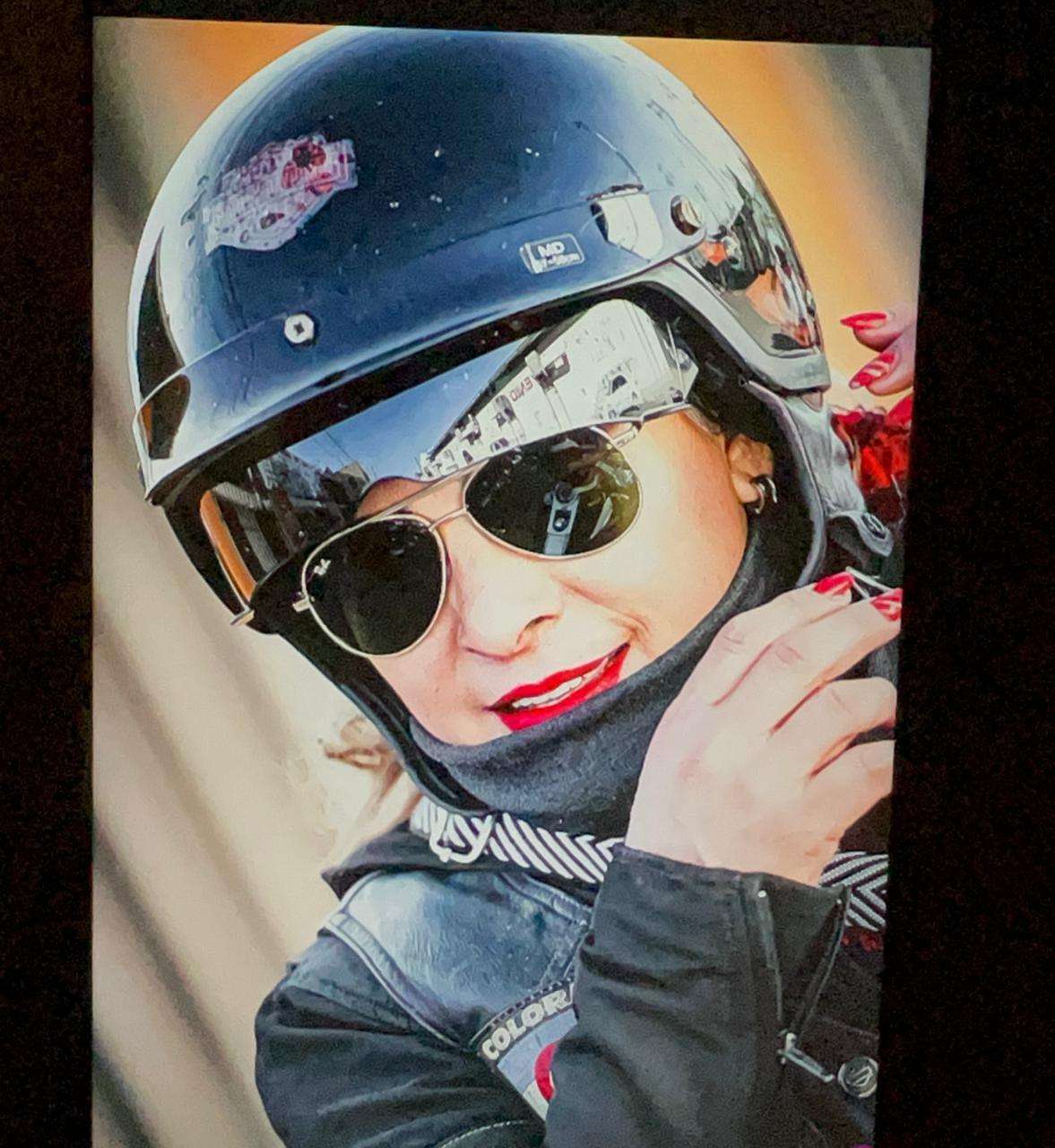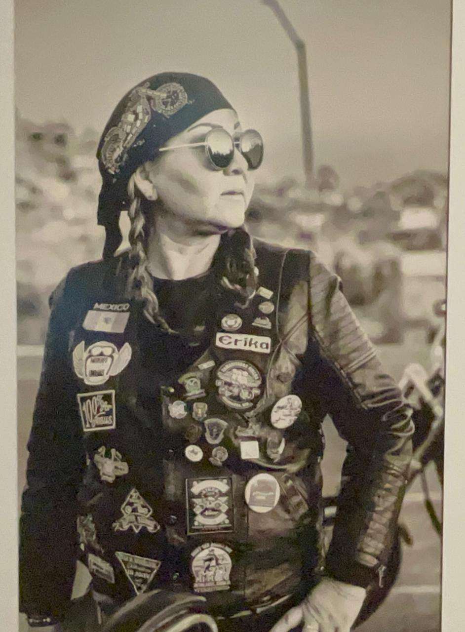 Se observan rostros bellos y cabelleras agitadas por el viento, algunos cubiertos por cascos y otros con miradas directas y desafiantes. Las expresiones reflejan seguridad, orgullo y una conexión genuina con la comunidad biker. Además, la presencia de nombres, apodos y fechas de iniciación en el motociclismo sugiere una tradición de legado cultural e histórico de las mujeres en el mundo biker masculino.