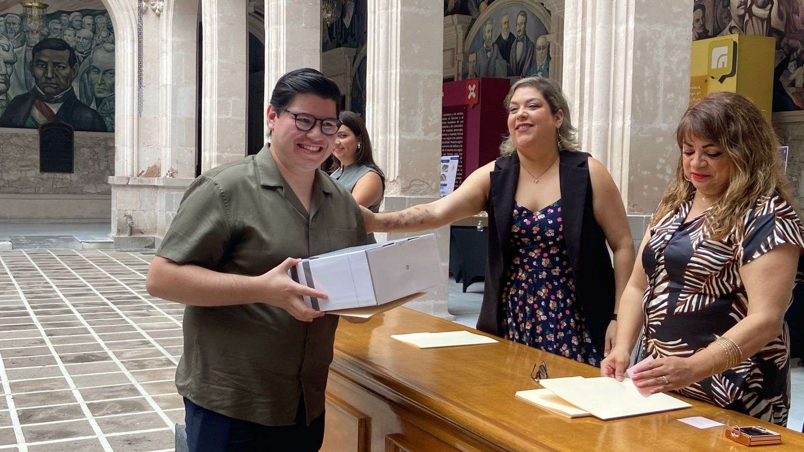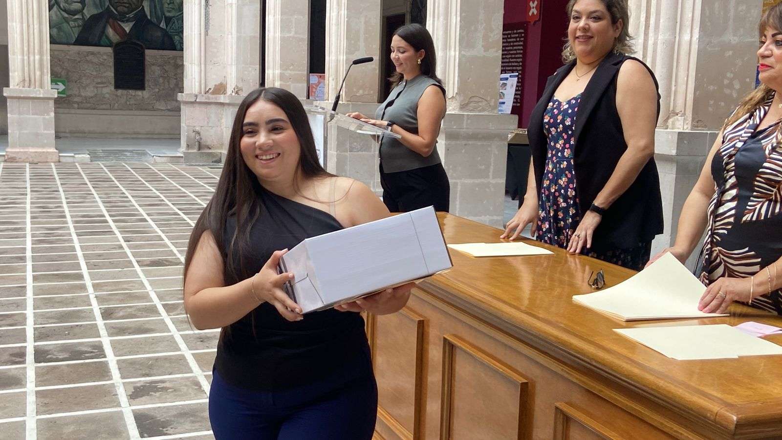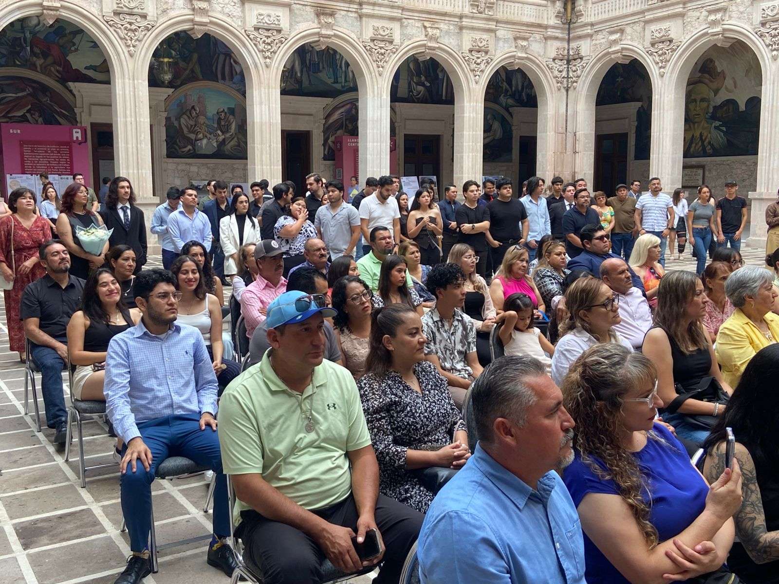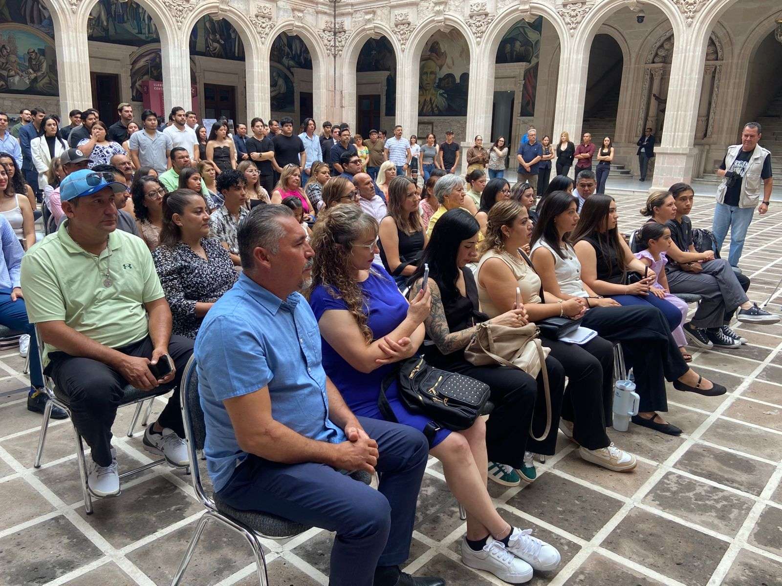 Chihuahua.- En el patio central de Palacio de Gobierno se llevó a cabo la muestra de talento de proyectos arquitectónicos de estudiantes de la Universidad de Durango, como parte del cierre del ciclo mayo-agosto 2025.