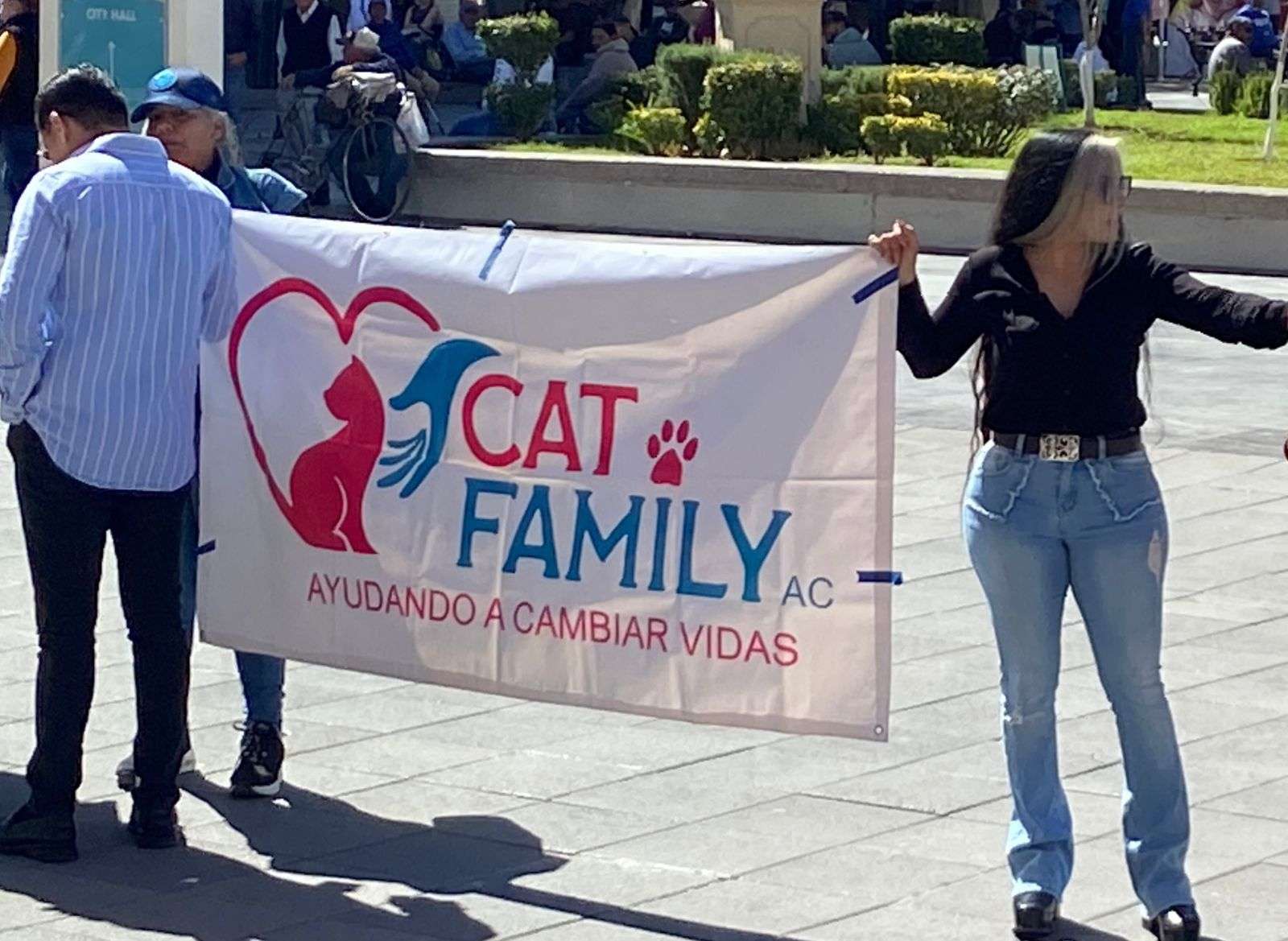 Chihuahua.- Integrantes de la asociación Cat Family se manifestaron en la entrada de la Predidencia Municipal para pedir la transparencia de los 60 millones de pesos que se destinaron al bienestar animal.