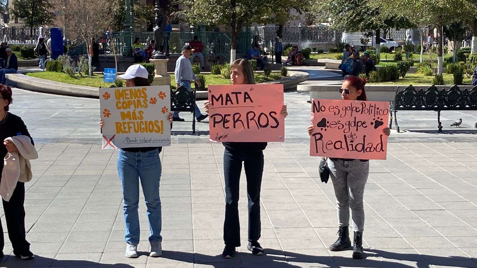 Al grito de “Fuera, Rocío”, “Mata perros”, “No es golpe político, es golpe de realidad”, es como miembros de la asociación Cat Family se manifestaron en la plaza de Armas frente a la presidencia municipal.