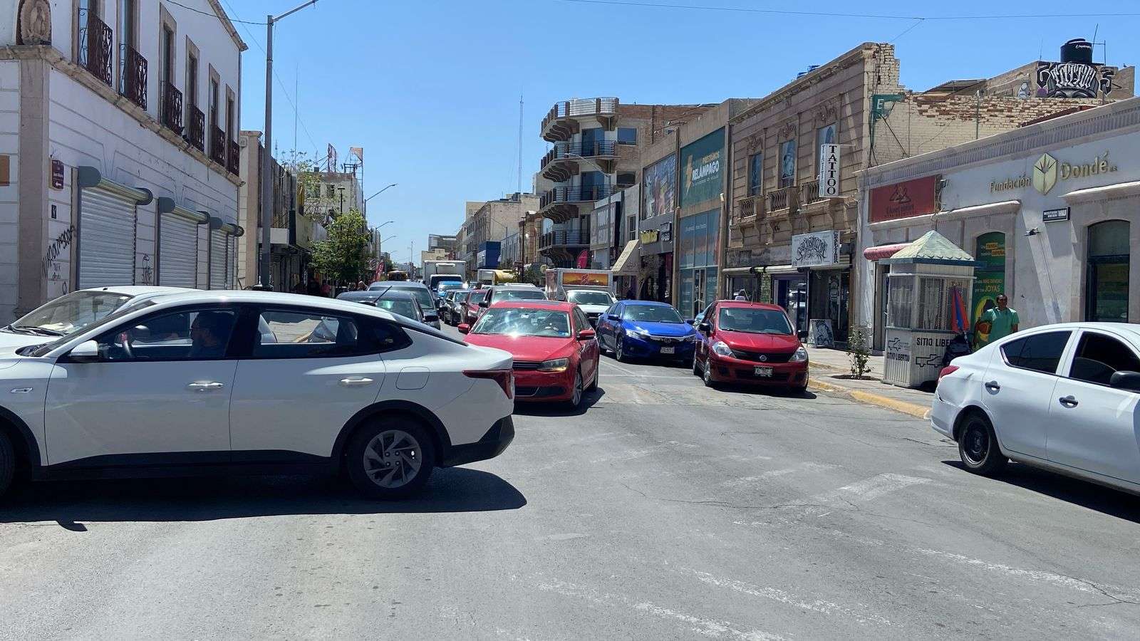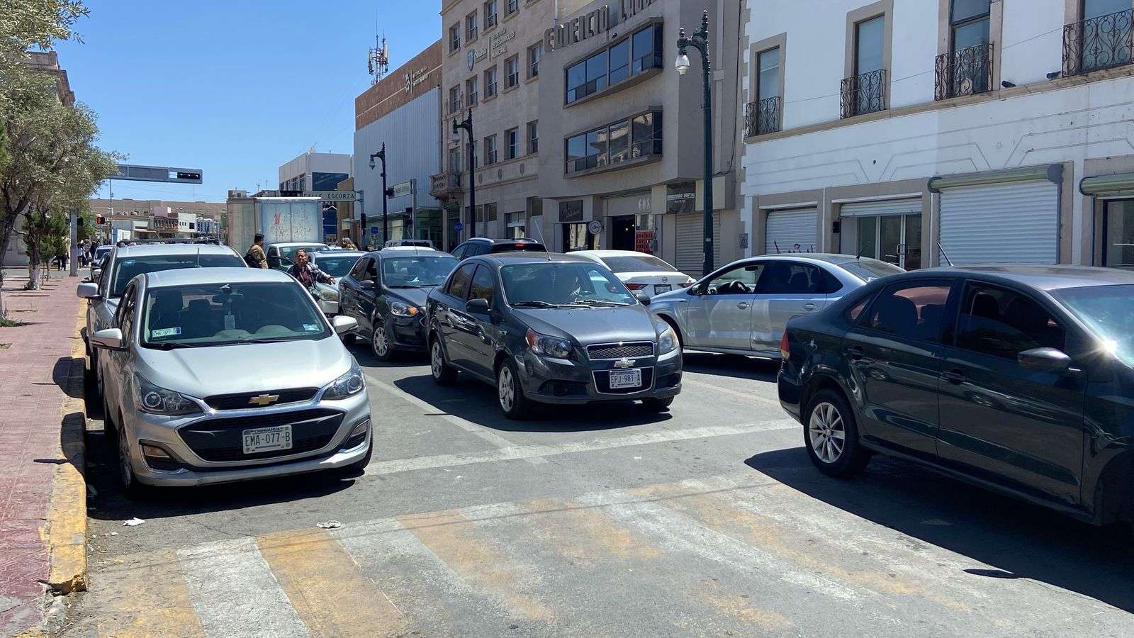 El cierre de la calle Aldama provocó un importante caos vehicular en el primer cuadro de la ciudad, obligando a los automovilistas a desviar su ruta por la calle Vicente Guerrero.