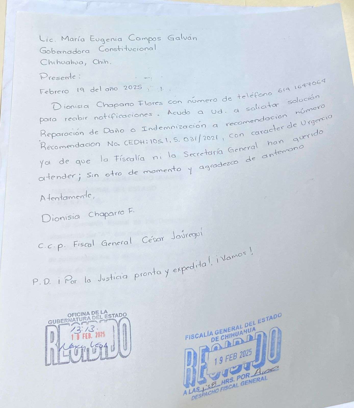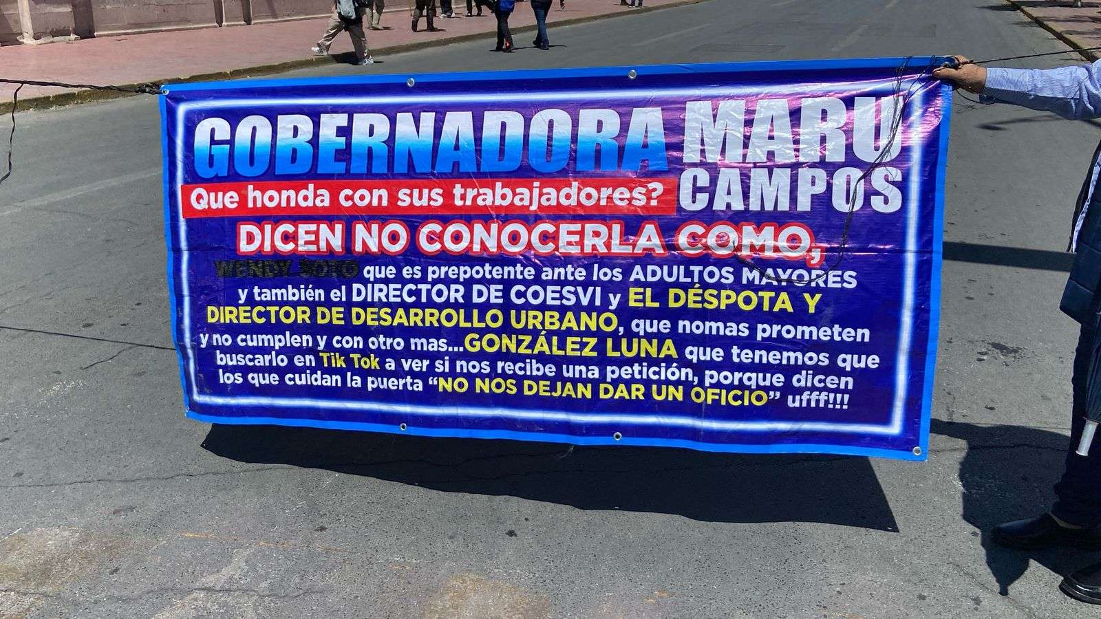 La señora Dionisia Chaparro Flores, acompañada por otras dos mujeres, encabezó el bloqueo exigiendo una indemnización de cien mil pesos, cantidad correspondiente a un préstamo que, asegura, otorgó al exalcalde Javier Garfio y que hasta la fecha no le ha sido pagado. Además, solicitó que se le restituya una recomendación emitida por la Comisión Estatal de los Derechos Humanos (CEDH), en la cual se establece la reparación total del daño derivado de una conducta irregular por parte de servidores públicos.