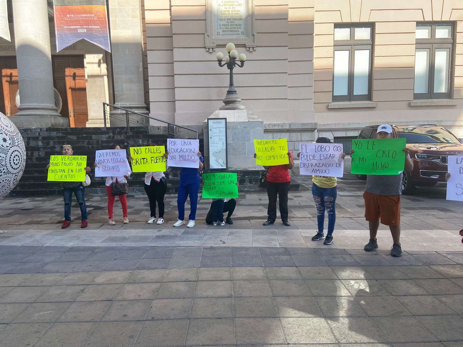 Chihuahua.- Padres de familia del Kinder Miguel Hidalgo, se manifestaron afuera de Palacio de Gobierno por la calle Libertad, donde exigieron que se haga justicia en contra del conserje Juan Manuel Soto Macías que abusó aparentemente de tres menores de tercer grado.
