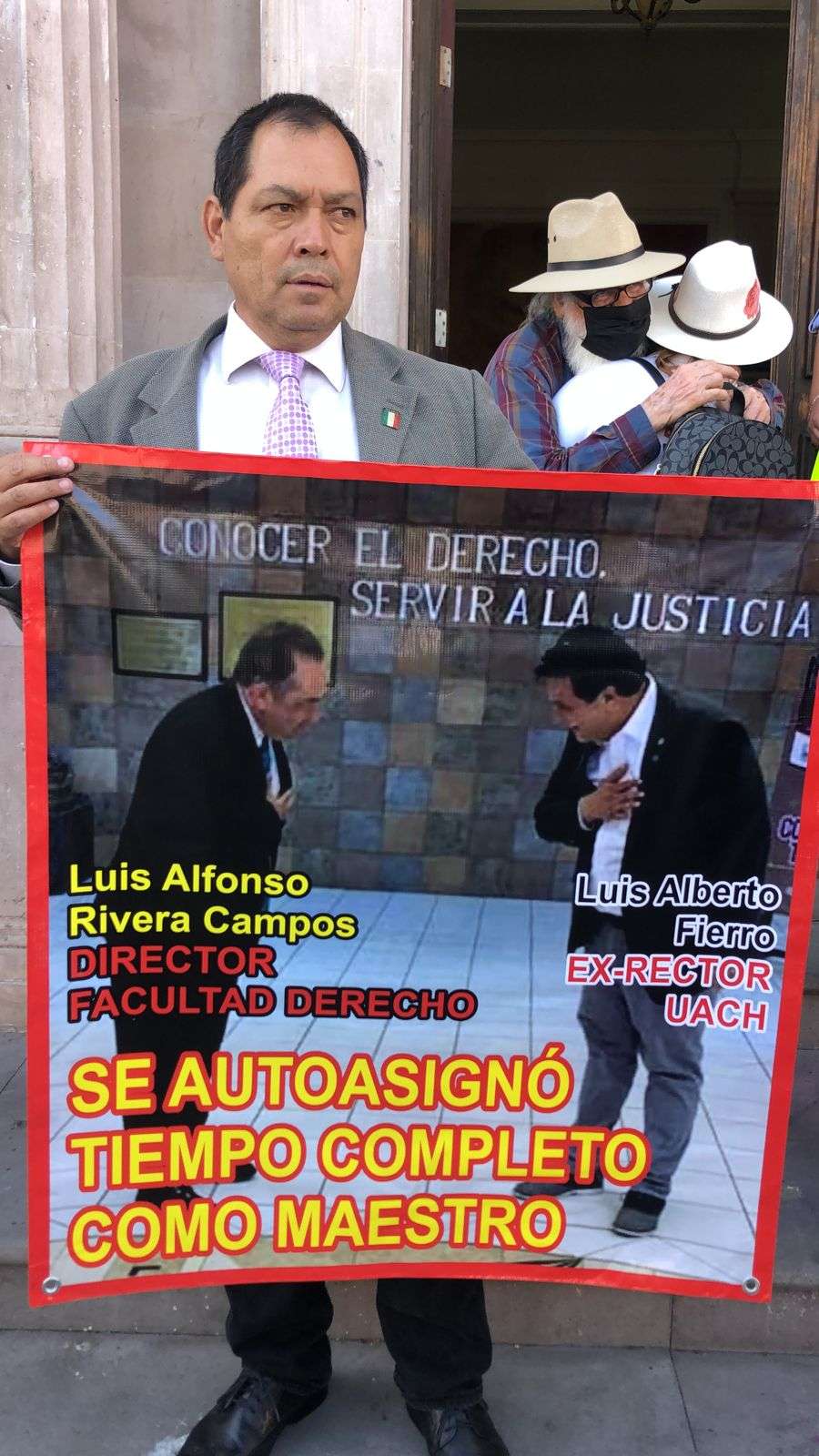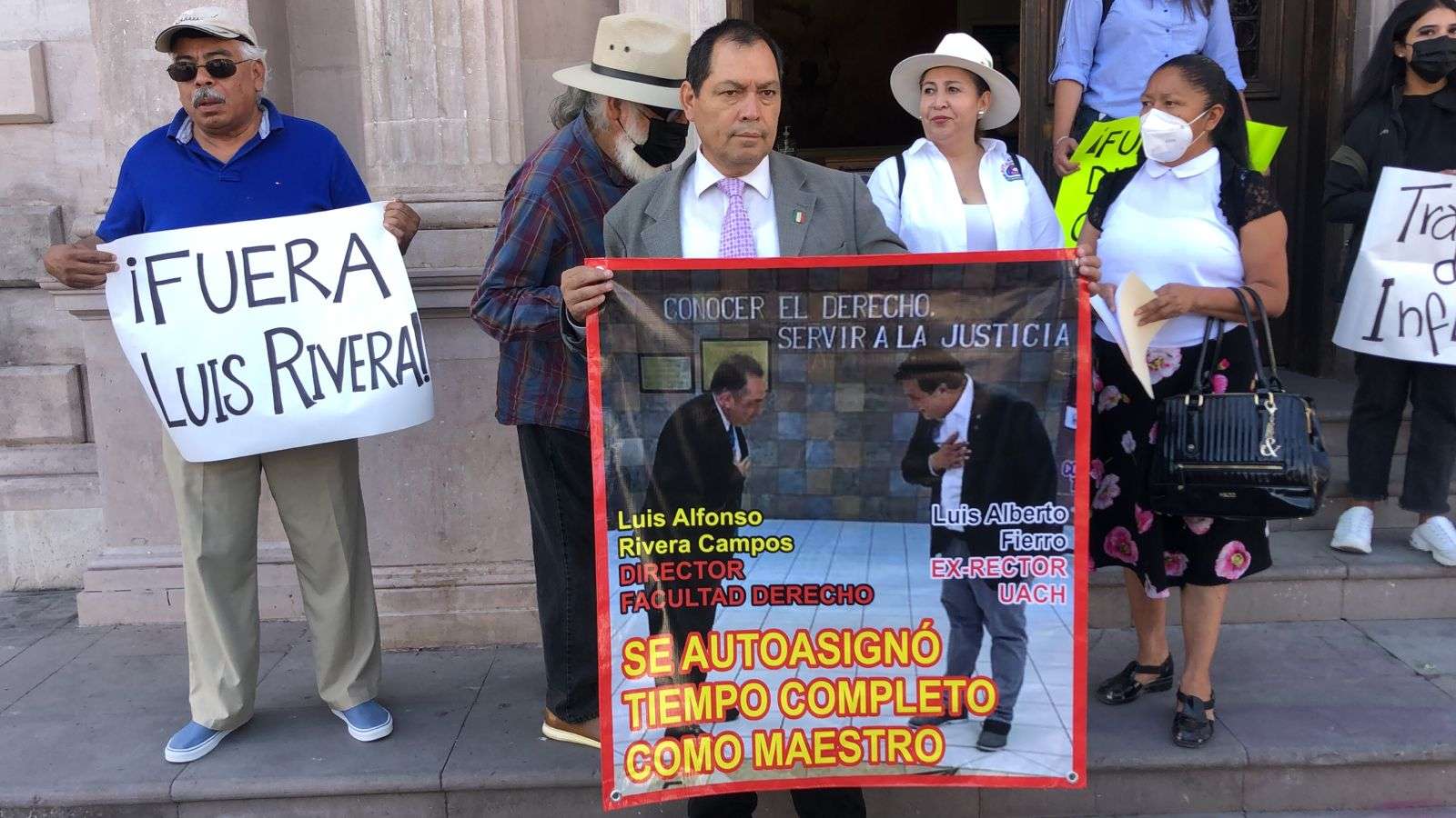 Lo anterior, como protesta para exigir que el Director de la Facultad de Derecho, Luis Rivera Campos, pida licencia ya que se encuentra bajo investigación por parte de la Fiscalía General de Justicia por el delito de Tráfico de Influencias.